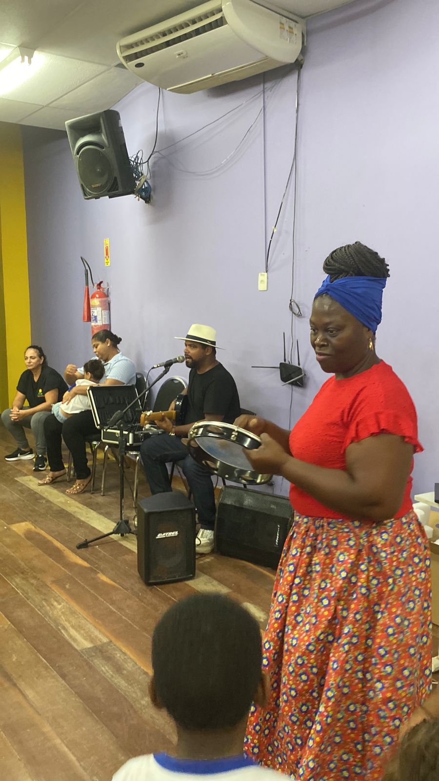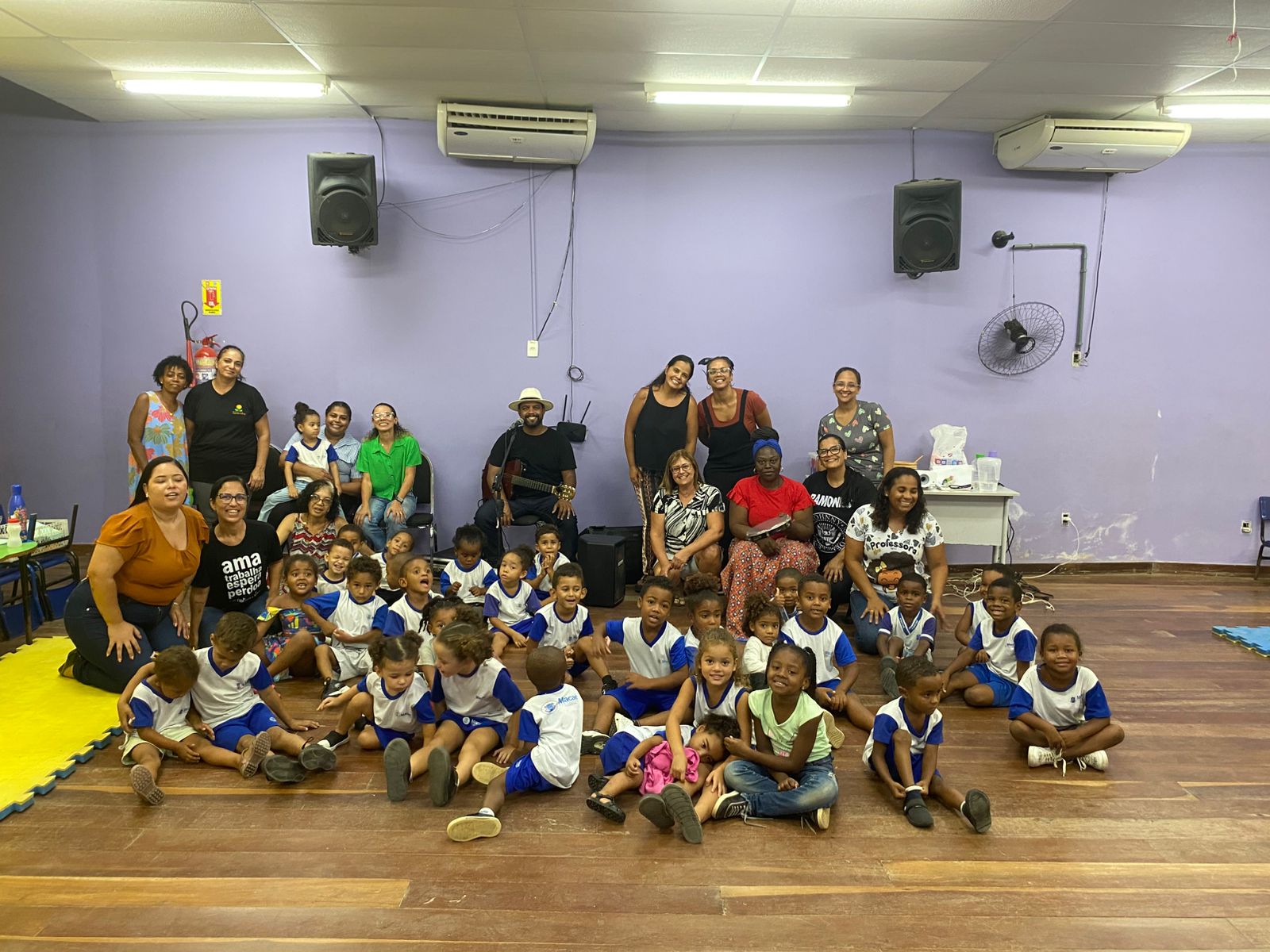 Nesta quarta-feira (25), os alunos da Emei Zélia de Souza Aguiar, nas Malvinas, participaram de uma aula diferente, em mais uma ação do projeto Nutriafro, iniciativa da Secretaria Municipal de Educação de Macaé. A proposta consiste na inclusão, no cardápio da merenda escolar, de pratos afro-indígenas, acompanhados de ações pedagógicas que valorizam essa temática. Com participação especial de Tia Ciata e do músico Ricardo Badaró, a atividade contou com feijoada e roda de samba.