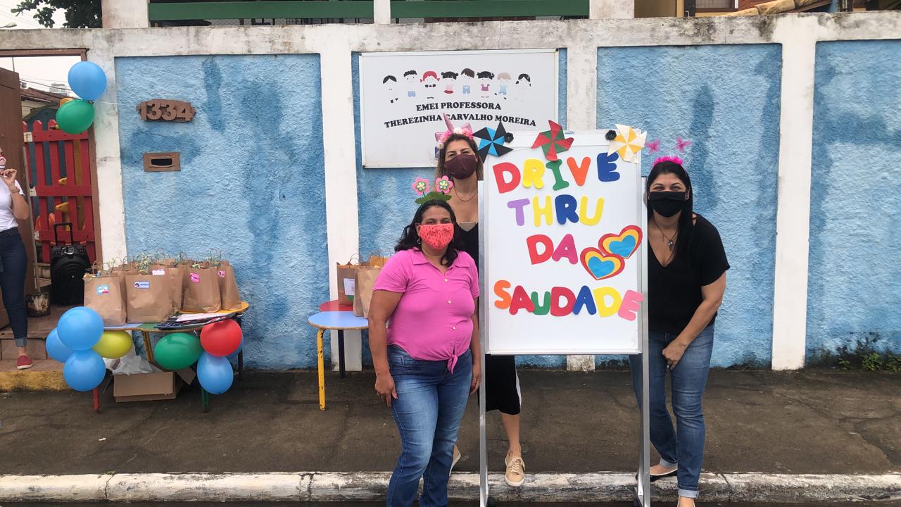 Mesmo que dentro dos carros e com máscaras de proteção, no drive-thru, os estudantes têm a oportunidade de rever o ambiente escolar e os profissionais das escolas. O reencontro está possibilitando que os alunos da Educação Infantil e do Ensino Fundamental matem saudades das unidades municipais e possam interagir, mesmo que de forma remota e momentânea, com outros colegas e professores.