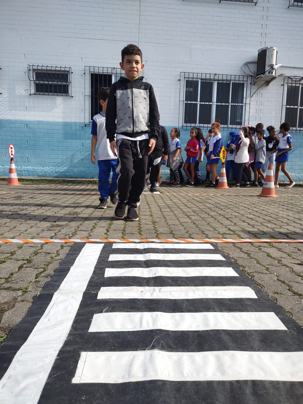 A atividade compreende explicações sobre as sinalizações de trânsito, ao mesmo tempo em que os alunos têm a oportunidade de percorrer um circuito, onde é destacado o papel do pedestre no trânsito. Além disso, a equipe da Coordenadoria de Educação para o Trânsito reforça a importância do uso dos equipamentos de segurança nos veículos, como a cadeirinha.