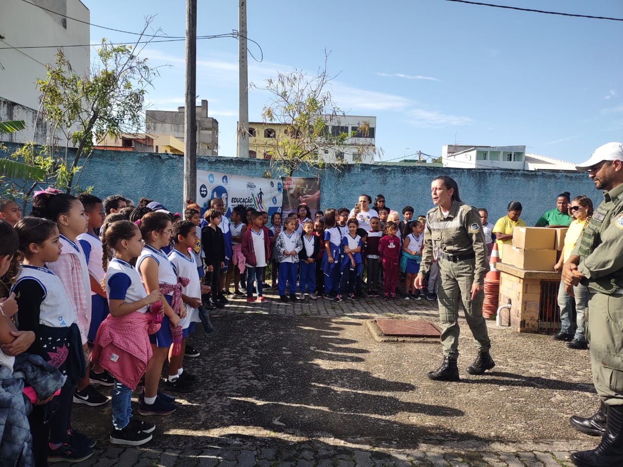 Com intuito de passar o conhecimento das sinalizações e formar futuros cidadãos conscientes de seu papel no trânsito, a Coordenadoria de Educação para o Trânsito da Secretaria de Mobilidade Urbana retomou as atividades da Escolinha de Trânsito neste segundo semestre. A primeira unidade de ensino a receber a equipe foi a Escola Municipal Almir Francisco Lapa, no Parque Aeroporto, nesta semana. Ao todo, 608 crianças do 1º ao 5º ano participaram das atividades nos dois turnos.