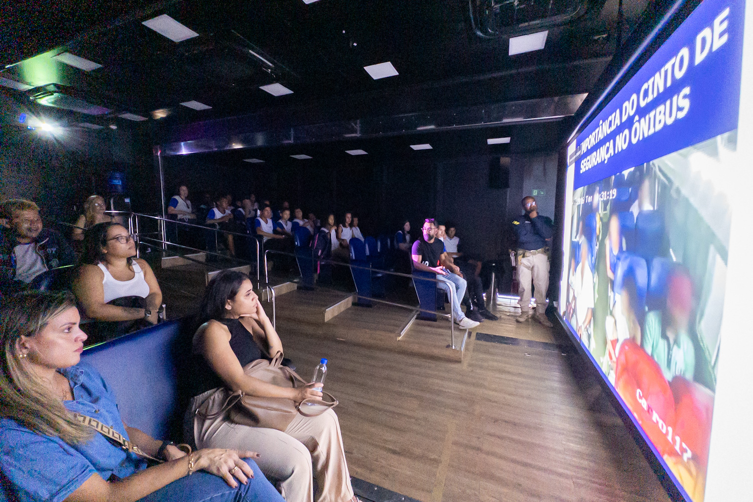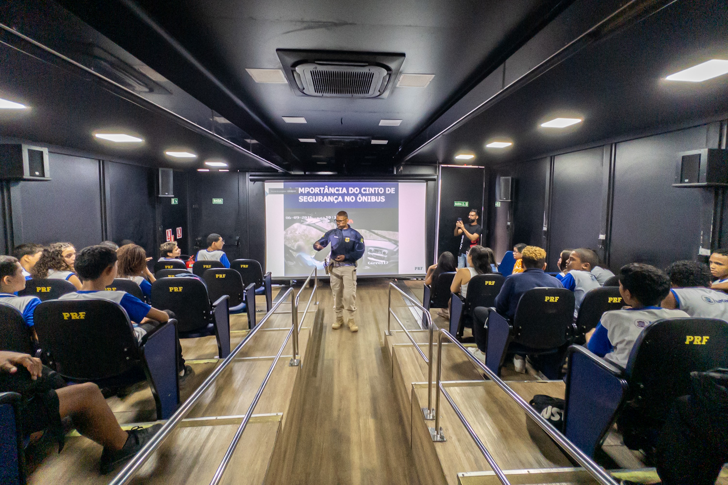 A sala de cinema com ar-condicionado dentro da carreta tem capacidade para cerca de 48 pessoas. Os vídeos e a palestra apresentados buscam conscientizar o público para o comportamento responsável de pedestres, ciclistas e futuros condutores, reforçando a necessidade de uso de cinto de segurança para todos e em todos os tipos de veículos e de capacete para motociclistas e ciclistas, além de alertar para o perigo do uso de celulares no trânsito.