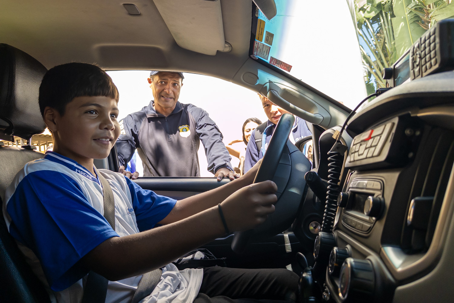 Levi Ferreira (12), que usou os óculos de simulação de efeitos etílicos e de sonolência, tentou passar por obstáculos. “Não é fácil. As imagens aparecem esticadas. Nunca vou usar álcool para dirigir”, afirmou. Joana Angélica Gonçalves (12) conheceu uma viatura da PRF por dentro. “Achei muito legal, principalmente o rádio para comunicação”.