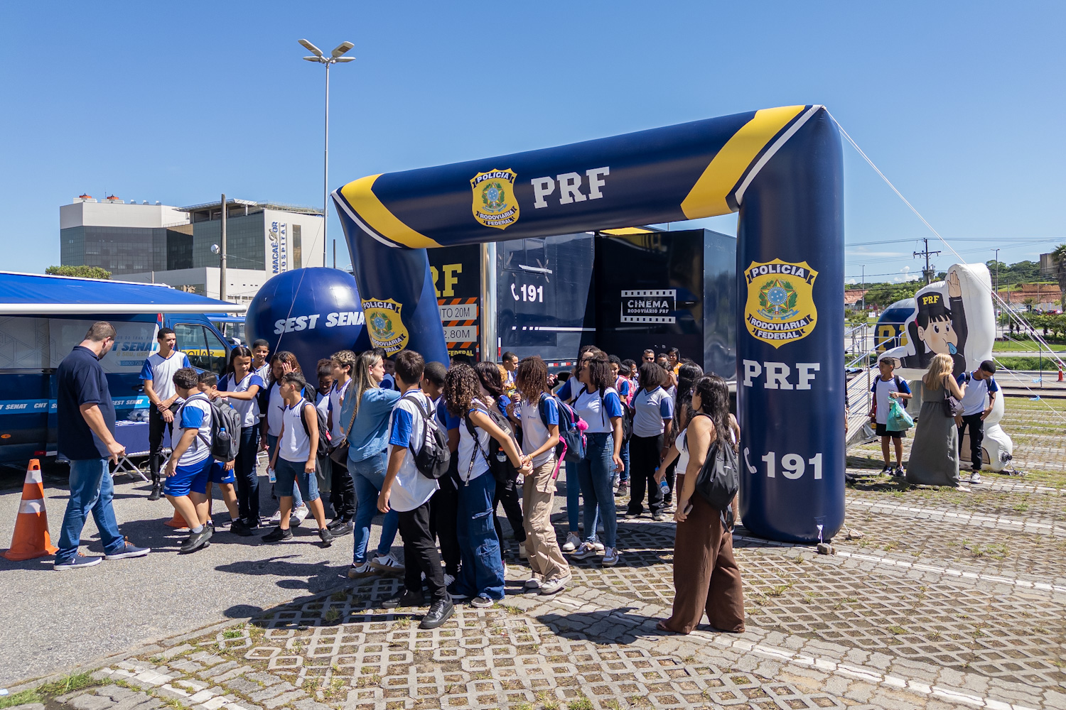 Alunos das escolas municipais Leonel de Moura Brizola, Ancyra Gonçalves Pimental, Ciep 058 Oscar Cordeiro, Engenho da Praia, Professora Elza Ibrahim, Professora Elisabete de Azevedo Dias Brandão, Ciep Maringá, Polivalente Anísio Teixeira e Dr. Cláudio Moacyr de Azevedo participam da proposta de uma experiência imersiva, por meio de recursos audiovisuais e atividades lúdicas, como o uso de óculos que simulam efeito de álcool e sono durante a direção.