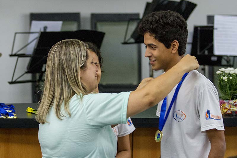 Já a musicalidade também ficou por conta do coral do Colégio Aplicação (CAp) e da banda “ Força Resultante” do Colégio Municipal Maria Letícia dos Santos Carvalho, que arrancaram aplausos e elogios do público. Presente, o vice-prefeito, Danilo Funke, parabenizou aos campeões. “ Os vencedores destas medalhas merecem muitas homenagens. Vamos continuar trabalhando em prol da qualidade de ensino para cada vez mais termos mais alunos com medalhas”, comentou.