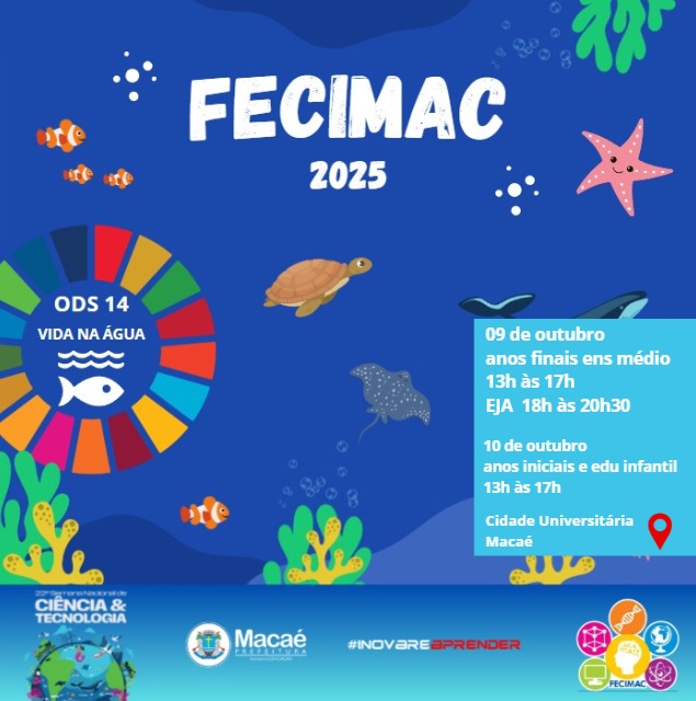 Terminam na próxima segunda-feira (06), as inscrições para a Feira das Ciências de Macaé (FECIMAC 2025), promovida pela Secretaria Municipal de Educação, em parceria com #Inovareaprender. A programação é voltada para estudantes e professores e acontecerá na Cidade Universitária, na próxima semana, dias quinta e sexta-feira (09 e 10), para os anos finais do Ensino Médio e EJA e anos iniciais do Ensino Médio e Educação Infantil, respectivamente.