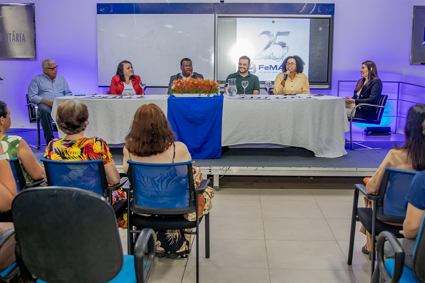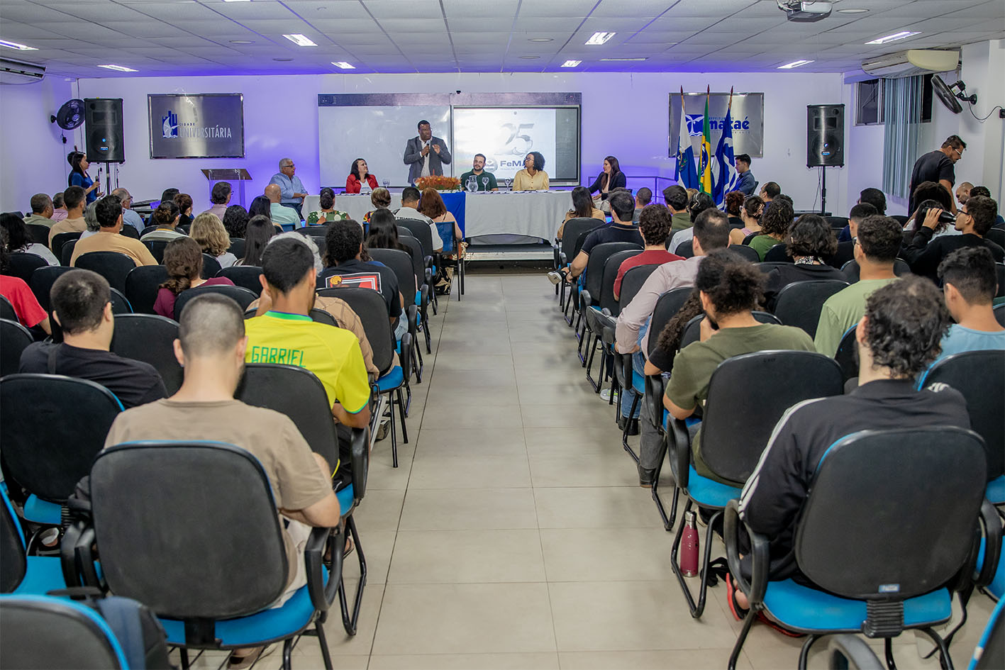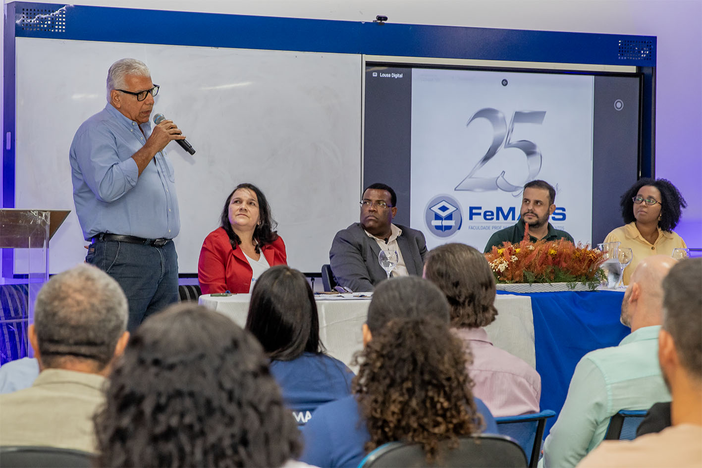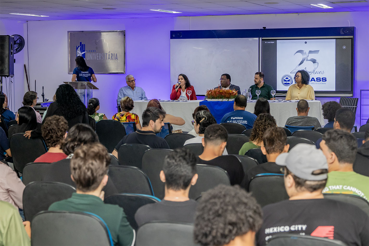 A Faculdade Professor Miguel Ângelo da Silva Santos (FeMASS), realizou na noite desta terça-feira (18), no auditório Cláudio Ulpiano, na Cidade Universitária, uma solenidade para celebrar os 25 anos de existência da instituição. Vinculada à Secretaria Executiva de Ensino Superior da Prefeitura Municipal de Macaé, a faculdade oferece cursos de graduação em Administração, Engenharia de Produção, Sistemas de Informação e Licenciaturas em Letras, Pedagogia e Matemática. Abertura do encontro contou com a apresentação do Coral da Cidade da Escola Municipal de Artes Maria José Guedes (Emart), vinculada à Secretaria de Cultura.