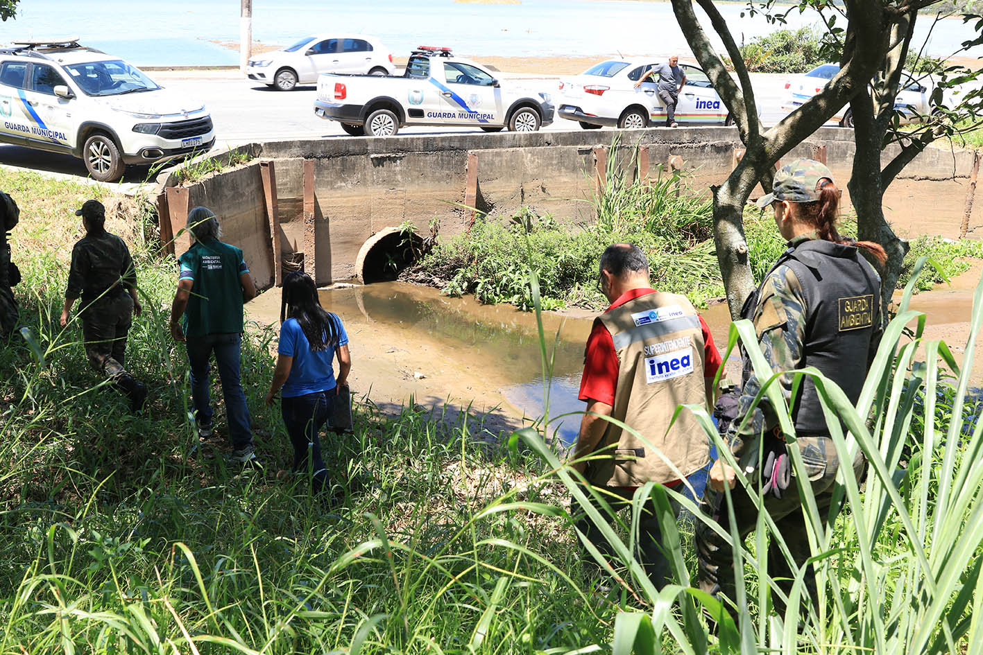 Em ação conjunta, coordenada pela Secretaria de Ambiente, Sustentabilidade e Proteção Animal, após o recebimento de denúncias, a área do canal do Mutum, nas proximidades do trevo da antiga Galope, nas adjacências da linha férrea, recebeu nesta quinta-feira (15) uma vistoria técnica para identificar o ponto de despejo irregular de esgoto sanitário. Estiveram presentes representantes das secretarias de Meio Ambiente, Sustentabilidade e Proteção Animal, Secretaria de Saneamento, Guarda Ambiental, BRK Ambiental e o Instituto Estadual do Ambiente (Inea Regional).