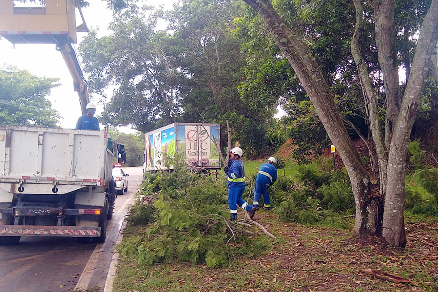 Equipes das Secretarias Adjuntas de Serviços Públicos e Defesa Civil e da Coordenadoria de Iluminação Pública atuam, na manhã desta quinta-feira (22), na Rodovia Amaral Peixoto (RJ-106), próximo ao Mirante da Lagoa, para desobstrução da via, devido à queda de uma árvore e de um poste.
