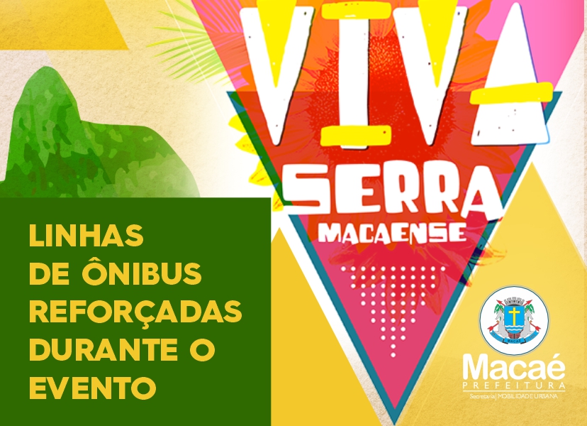Para atender a demanda do público que vai ao Viva Serra Macaense, a Coordenadoria de Transporte da Secretaria de Mobilidade Urbana informa que haverá reforço nas linhas de ônibus para o evento a noite toda. O Viva Serra Macaense será realizado no Parque de Exposições da Serra, em Córrego do Ouro, de quinta-feira a sábado (26 a 28), a partir das 18h. A faixa etária é livre e a entrada é gratuita.