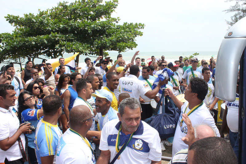 Com a taça já em solo macaense, a torcida entoava o coro de “É campeão” com som da bateria que sempre acompanha os jogos da equipe. Os atletas e a comissão técnica subiram no trio elétrico e foram seguidos por carros e motos no trajeto que começou na praia do Pecado e passou pela orla da cidade. Pessoas das varandas dos prédios, nas ruas, saudavam os campeões brasileiros.