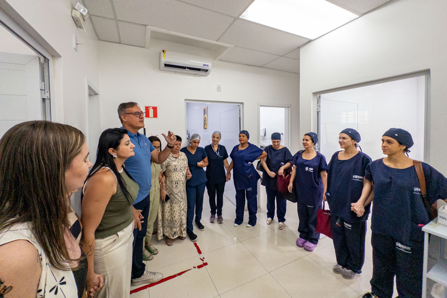 De acordo com a chefe do Centro Cirúrgico do Dona Alba, Dra. Fernanda Lande, a Dona Alba está com quatro salas de centro cirúrgico — três fixas e uma destinada ao suporte, que funcionará como retaguarda caso alguma equipe enfrente maior demanda. No HPM, mais uma sala exclusiva estará dedicada ao mutirão.