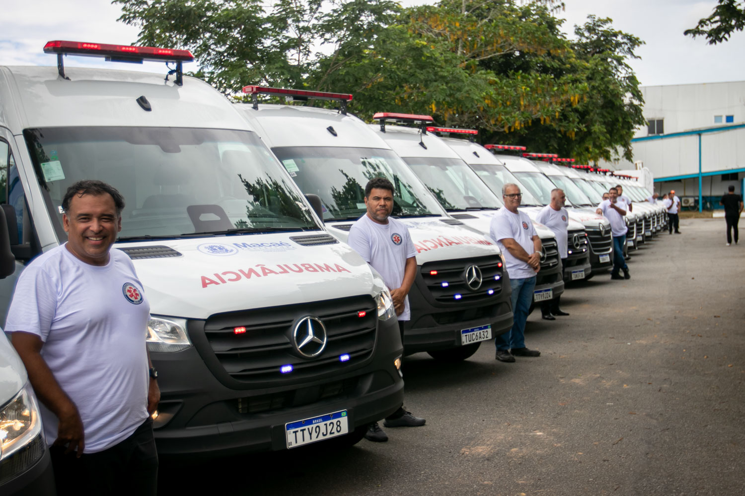 O prefeito de Macaé, Welberth Rezende, entregou, na manhã desta sexta-feira (20), 22 novas ambulâncias durante a solenidade de aniversário do Hospital Público de Macaé (HPM). Os veículos serão destinados às unidades de urgência e emergência do município. A iniciativa faz parte de um projeto de modernização da frota, com o objetivo de garantir mais agilidade e dignidade no transporte de pacientes.