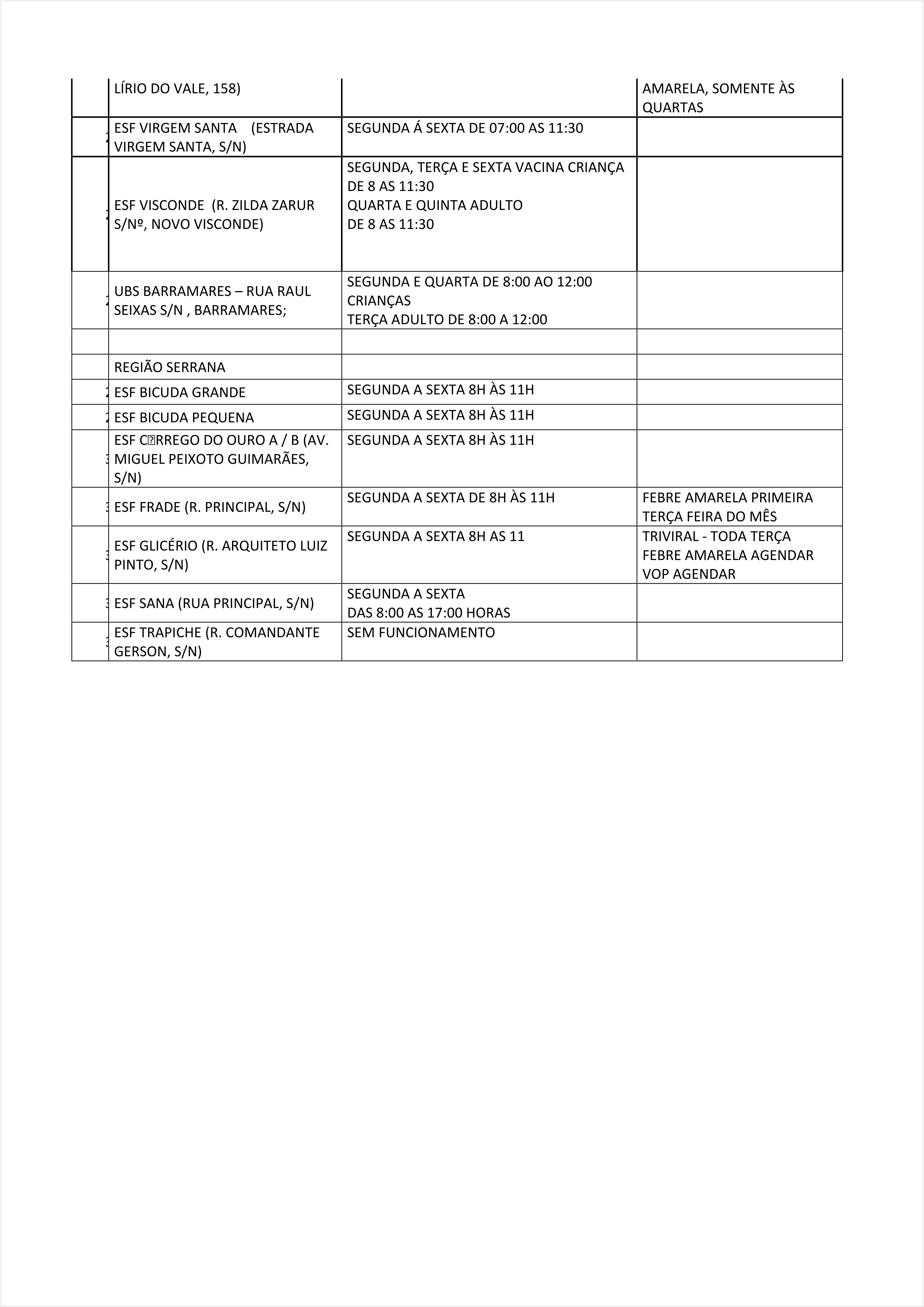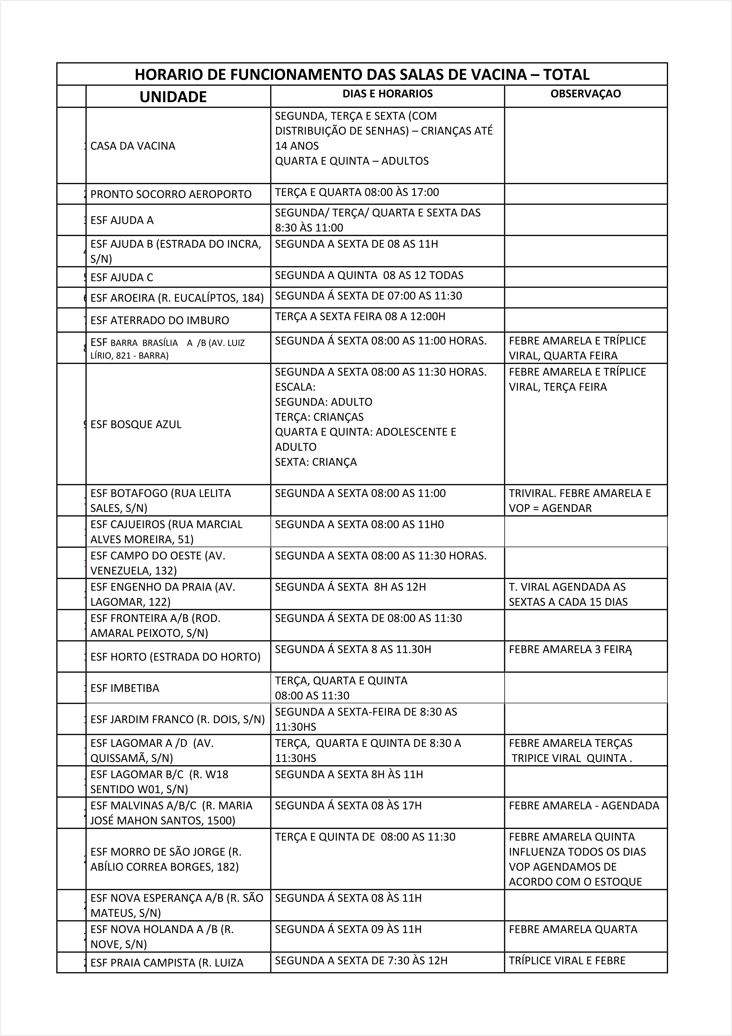 As vacinas estão disponíveis em dias e horários específicos em cada unidade