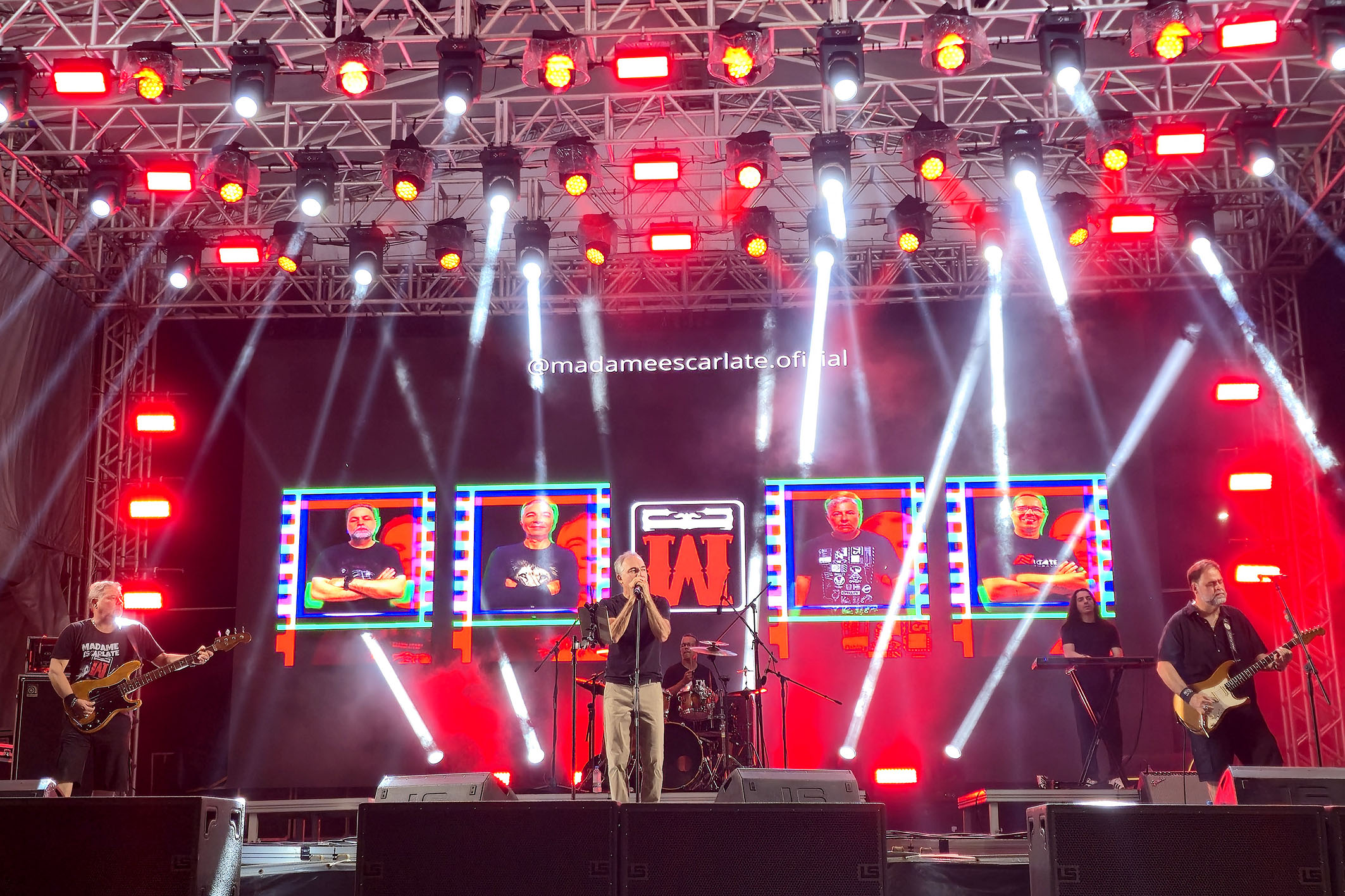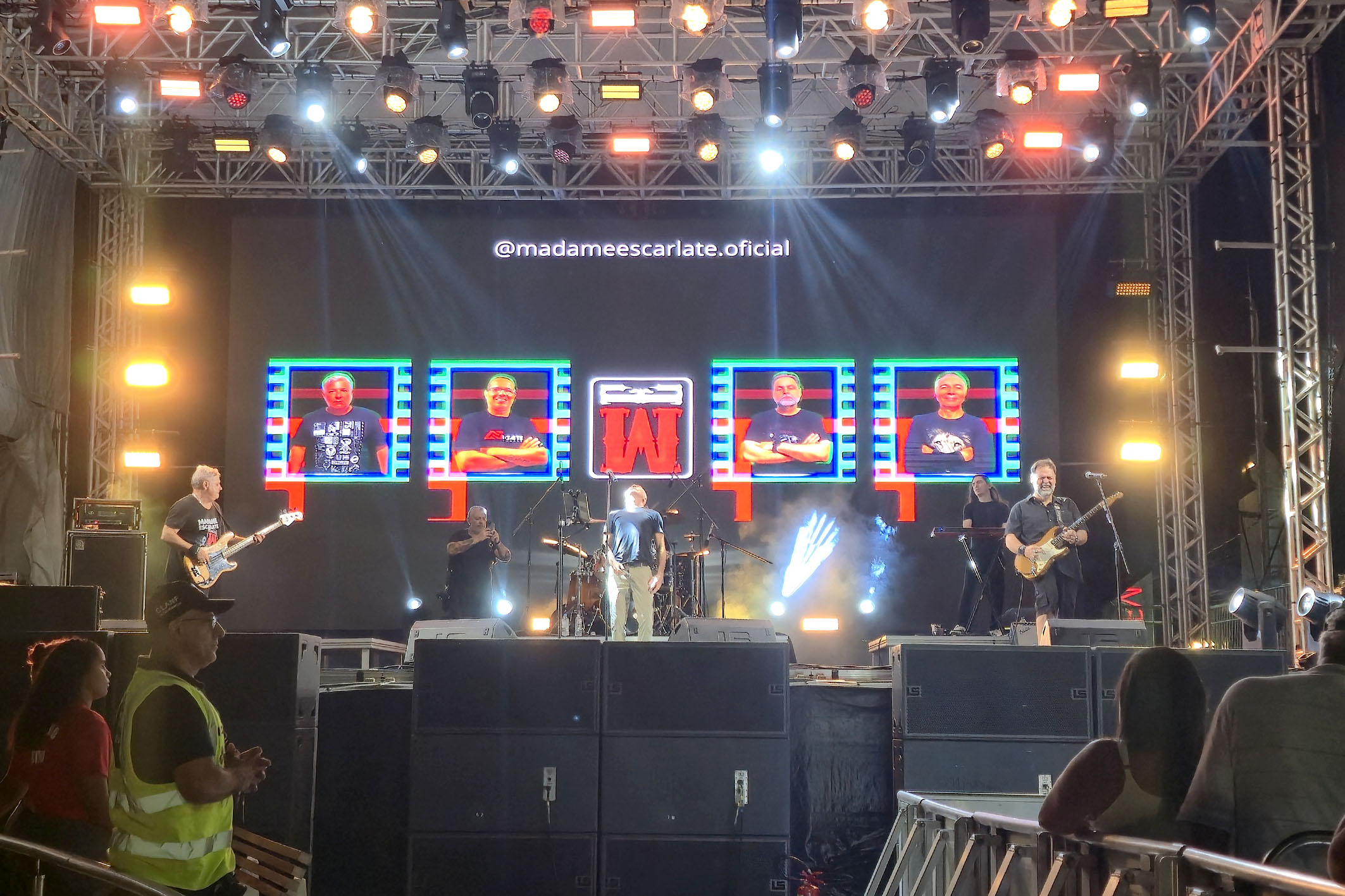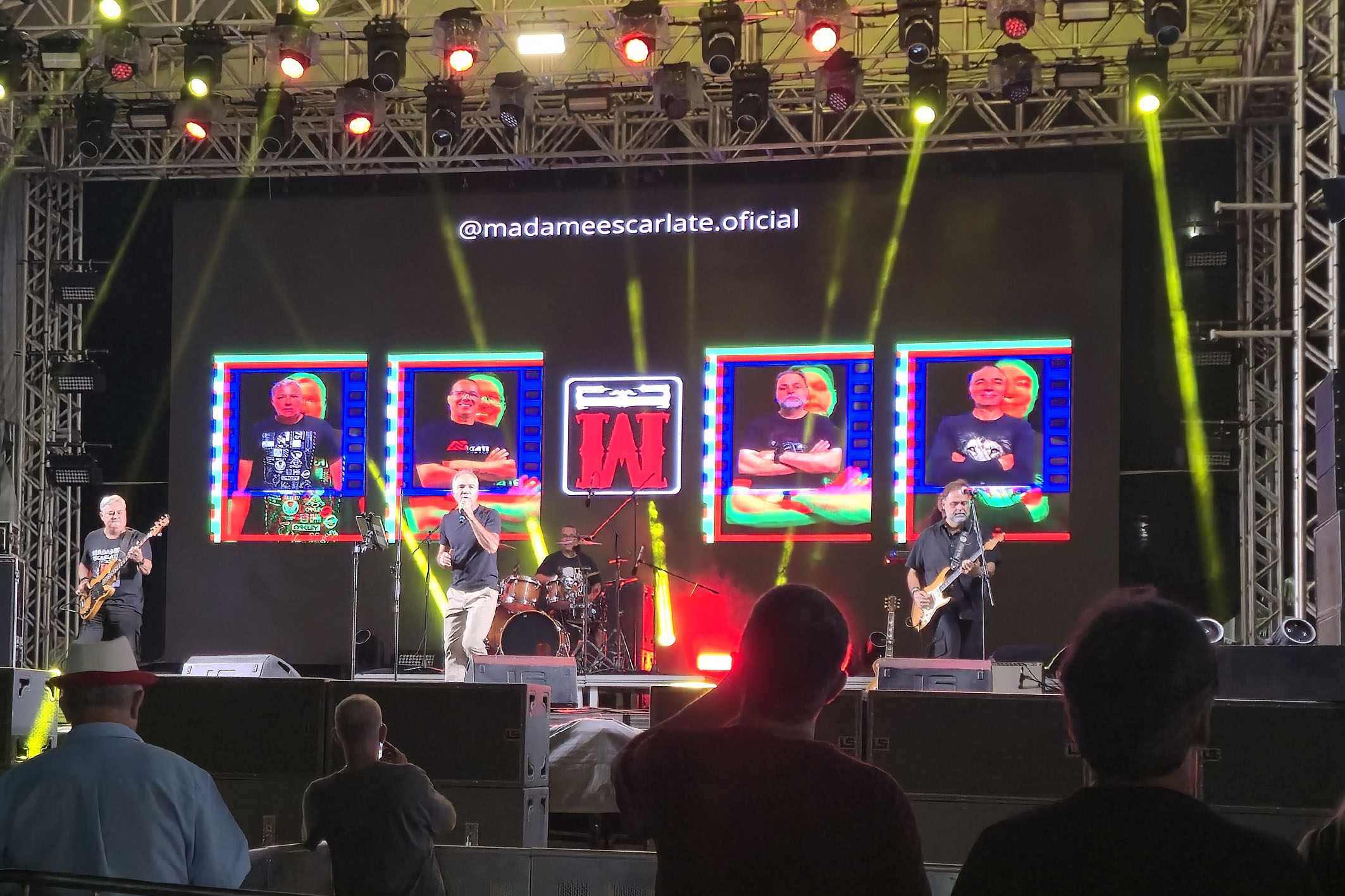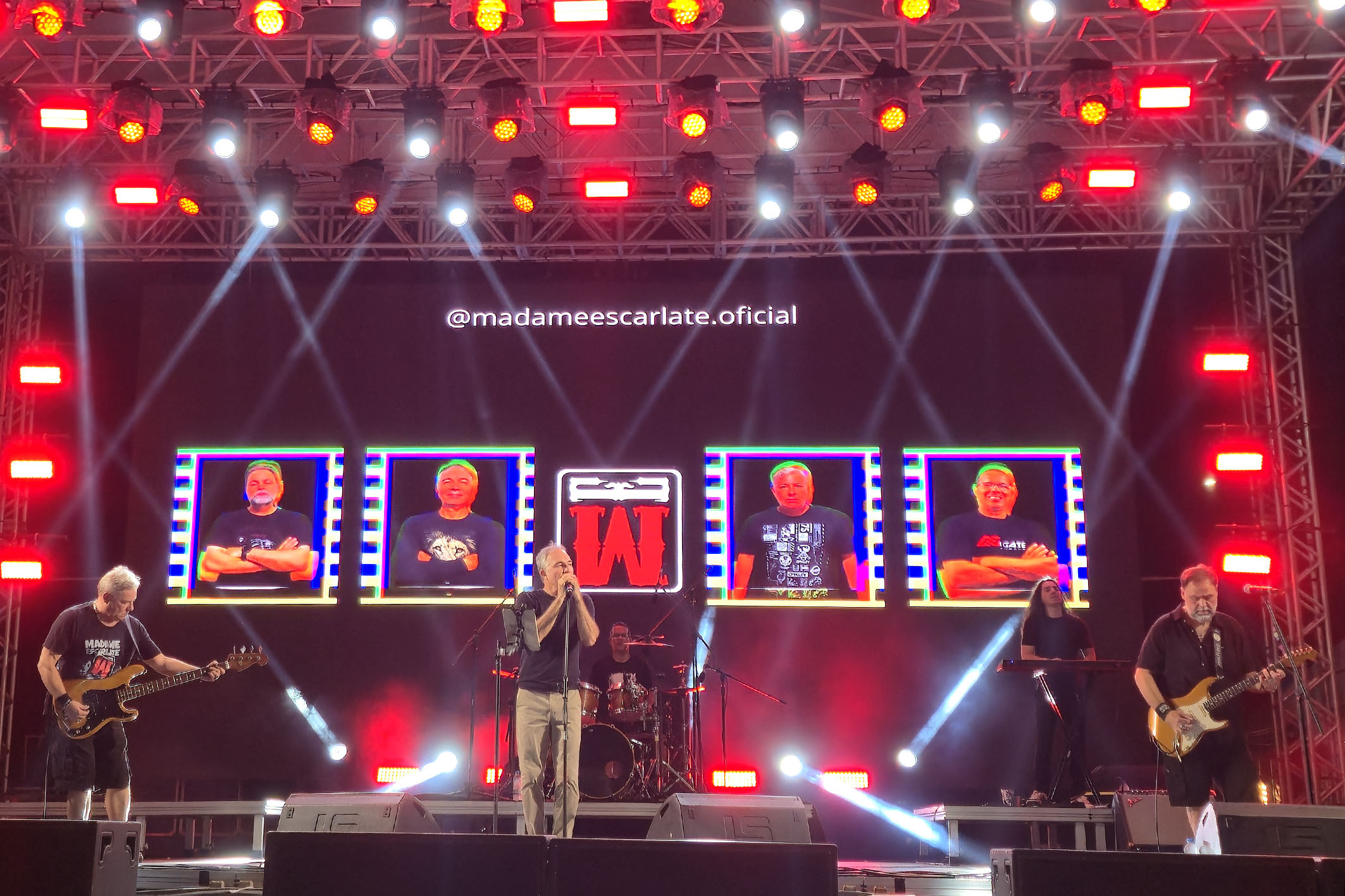 Com a energia lá em cima, a banda Madame Escarlate agitou o público na noite desta sexta-feira (30) na programação do Sesc Verão, em parceria com a Prefeitura de Macaé. O show, realizado no palco dos Cavaleiros, reuniu uma série de sucessos do rock nacional e internacional das décadas de 80, 90 e 2000 como Is This Love, do Whitesnake e Pro Dia Nascer Feliz, do Barão Vermelho.