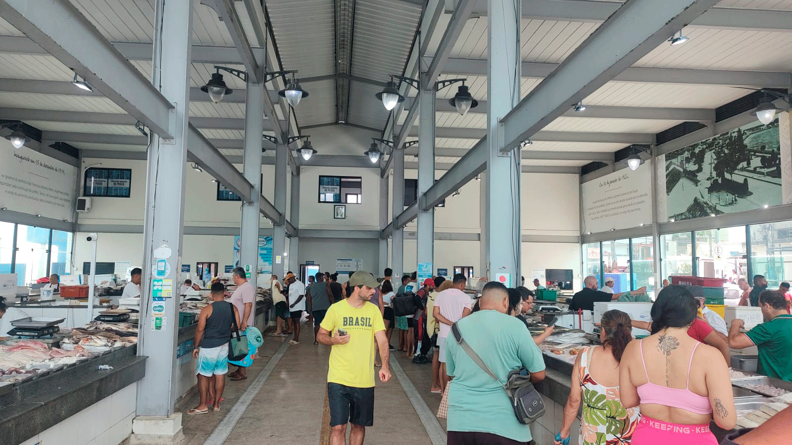 A variedade é um dos principais atrativos do mercado, que oferece opções para todos os gostos e bolsos, e ficará aberto até às 14h. Espécies como robalo, dourado, pescada, anchova e camarão estão entre as mais procuradas, além de mariscos e outros frutos do mar que ganham destaque nesta época. A oferta constante e a reposição diária garantem a qualidade dos produtos, que chegam diretamente da pesca local.