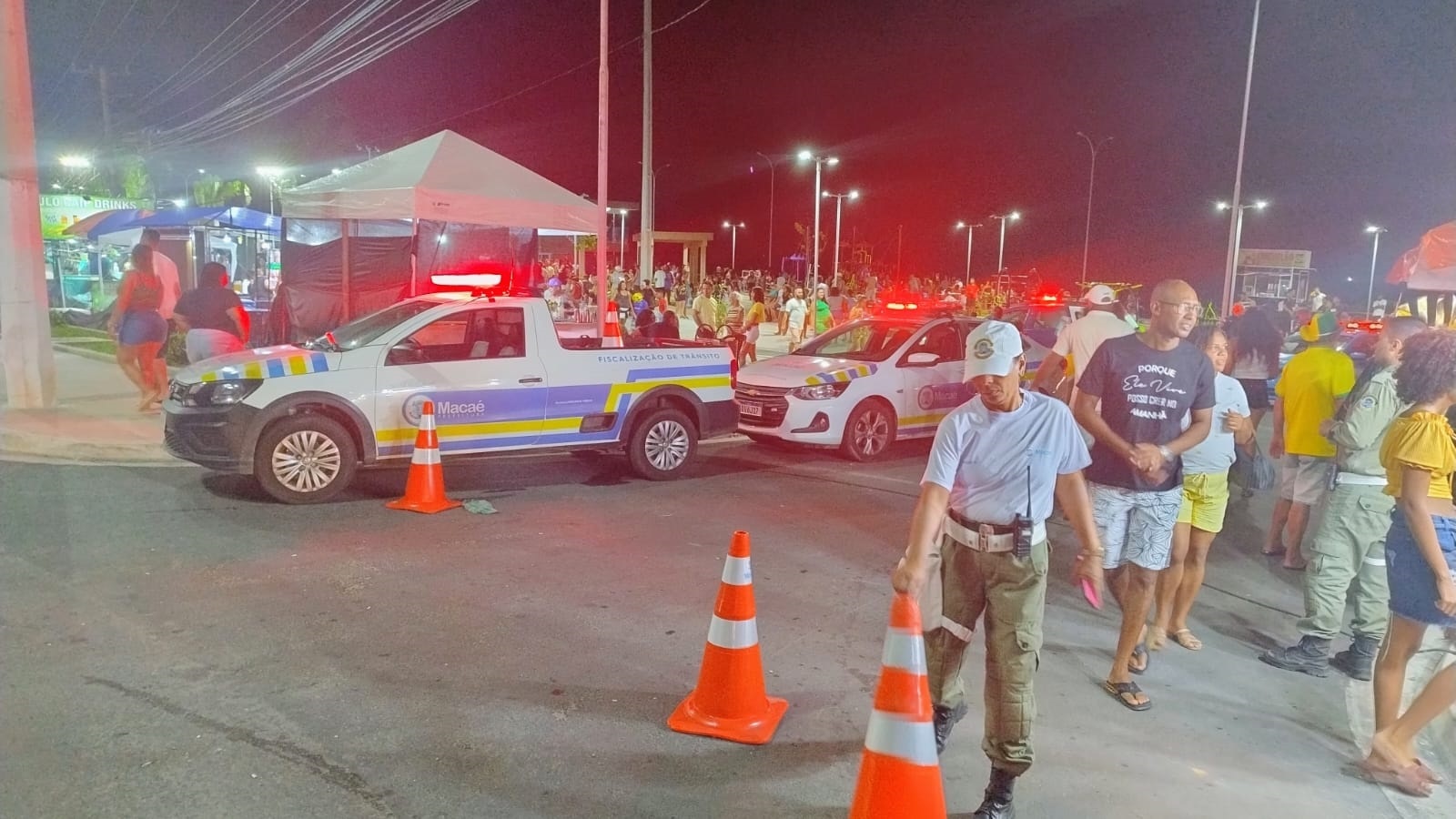 Durante o feriadão, os agentes da Coordenadoria de Trânsito e os fiscais da Coordenadoria de Transporte atuaram nos Cavaleiros, Imbetiba, Bar do Coco, Sana e Glicério, garantindo a segurança dos pedestres, a fluidez do tráfego e a fiscalização do transporte público. As linhas de ônibus dos locais de eventos e serra também tiveram reforço.
