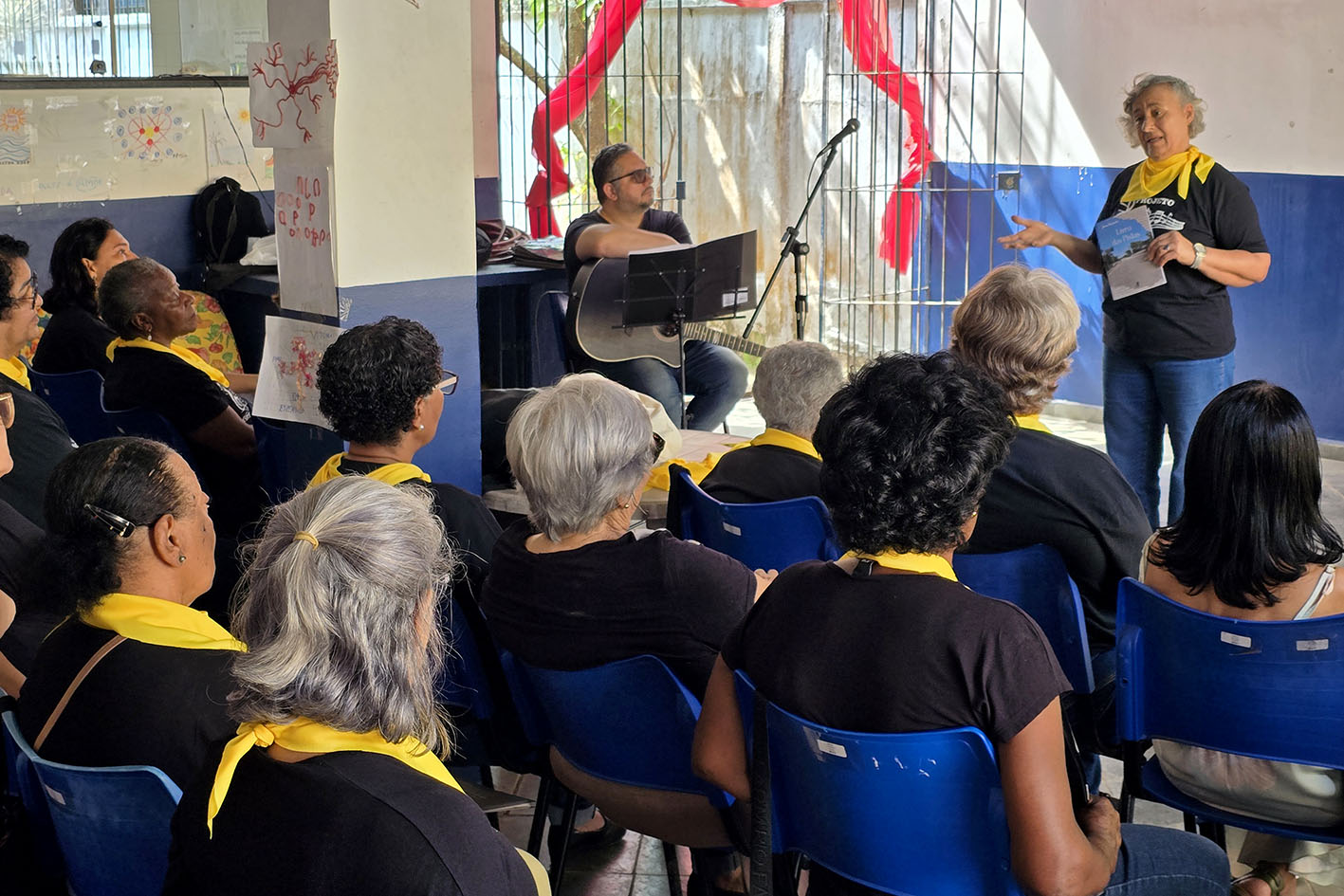O projeto “Contos e Cantos”, que une narração de histórias e música, completa 10 anos em 2026. “A gente conta história e depois canta, daí o nome do projeto, que tem auxiliado muitas vidas”, explicou a coordenadora Luciana. Para ela, o encontro foi uma celebração da vida: “Nosso objetivo aqui é a socialização, a convivência, que dá nome à casa e ao centro.”