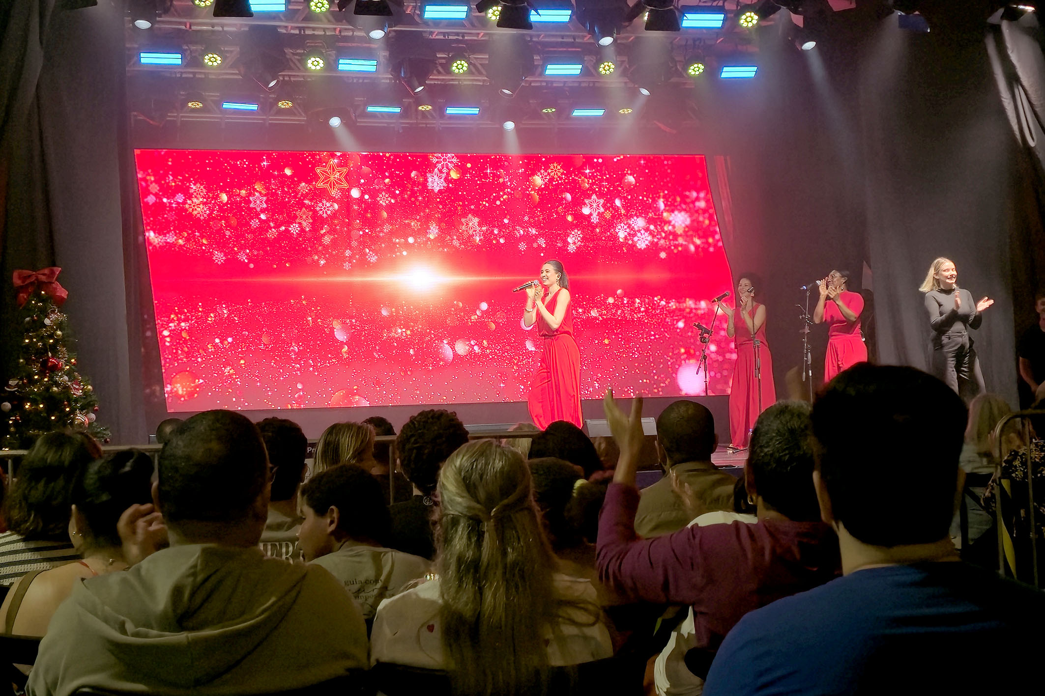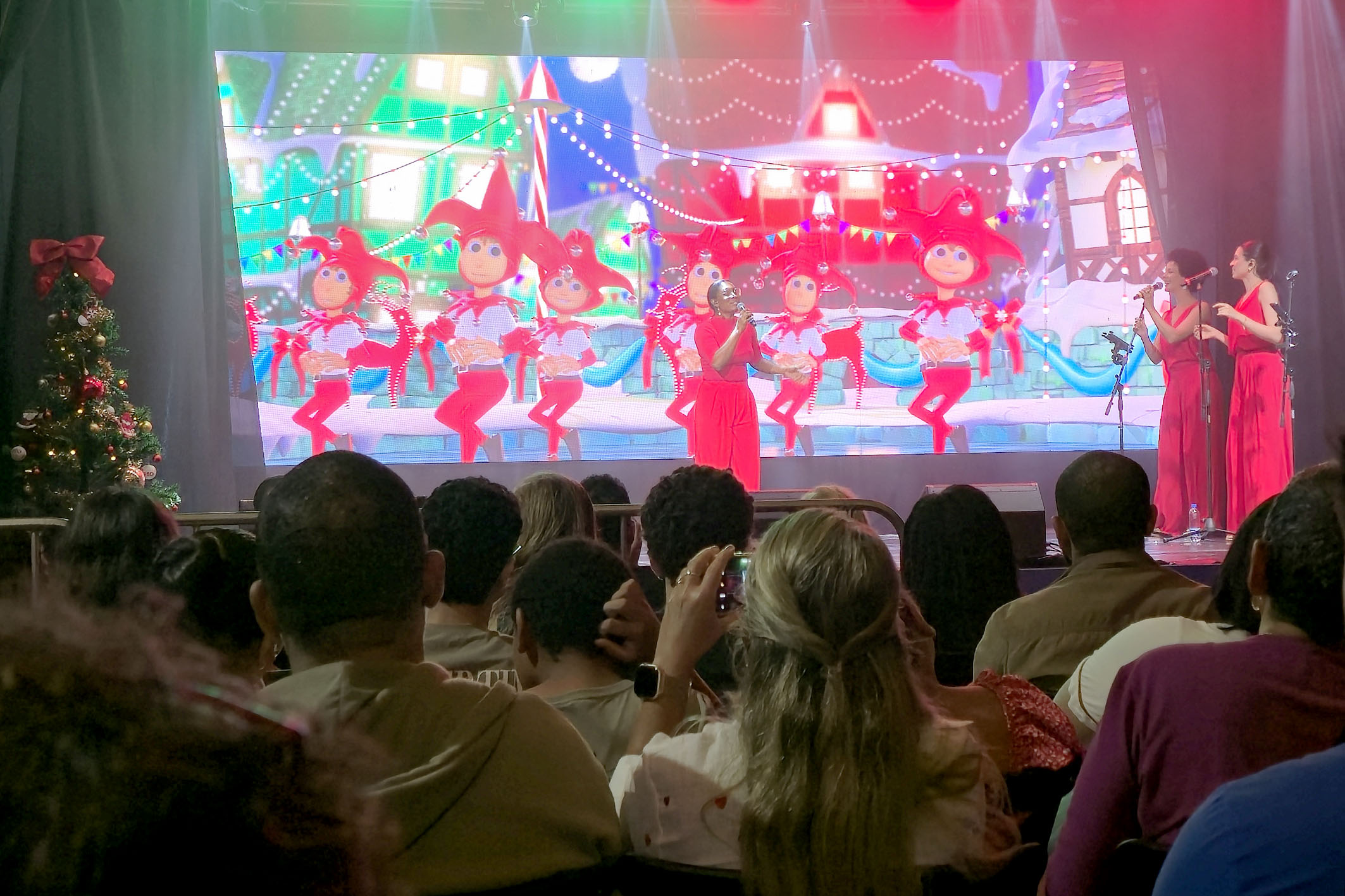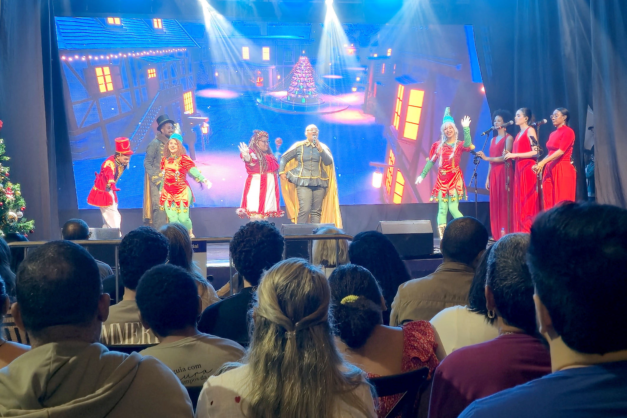 Outro momento especial foi o espetáculo “ Para iluminar o mundo”. A apresentação é reconhecida por ser uma celebração da vida, tradições e do poder transformador da arte. O palco contou com o brilho e voz marcante da cantora Kynnie e as convidadas Daniele Souza, Sarah Freitas e Verônica Gonçalves. O musical foi marcado por canções que destacam lembranças, sentimentos e a importância do espírito natalino , como a tradicional ‘Jingle Bells".