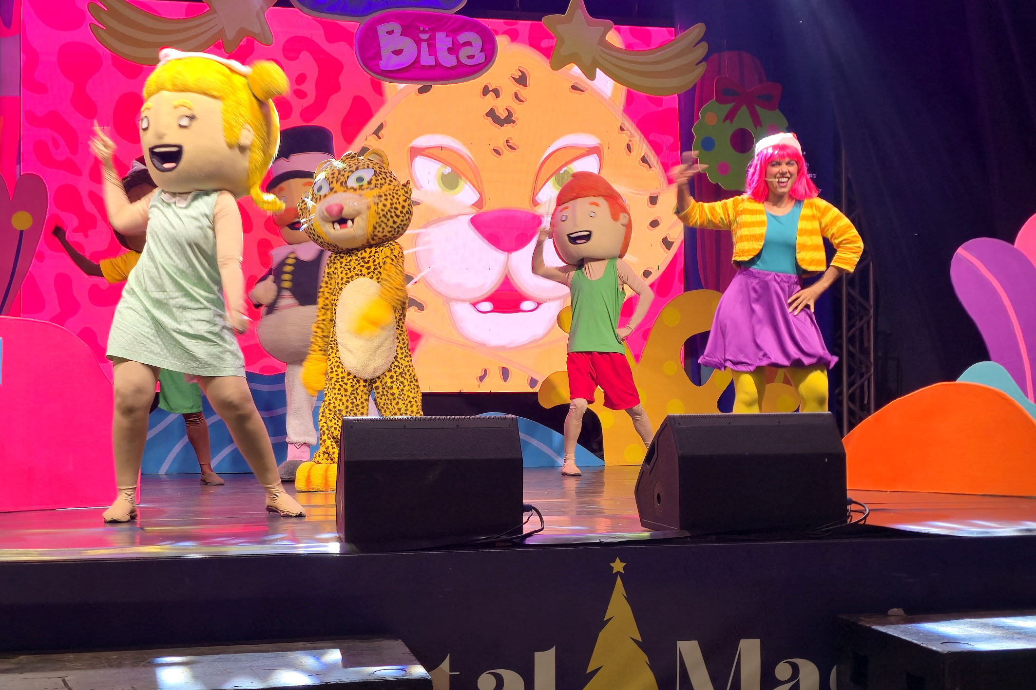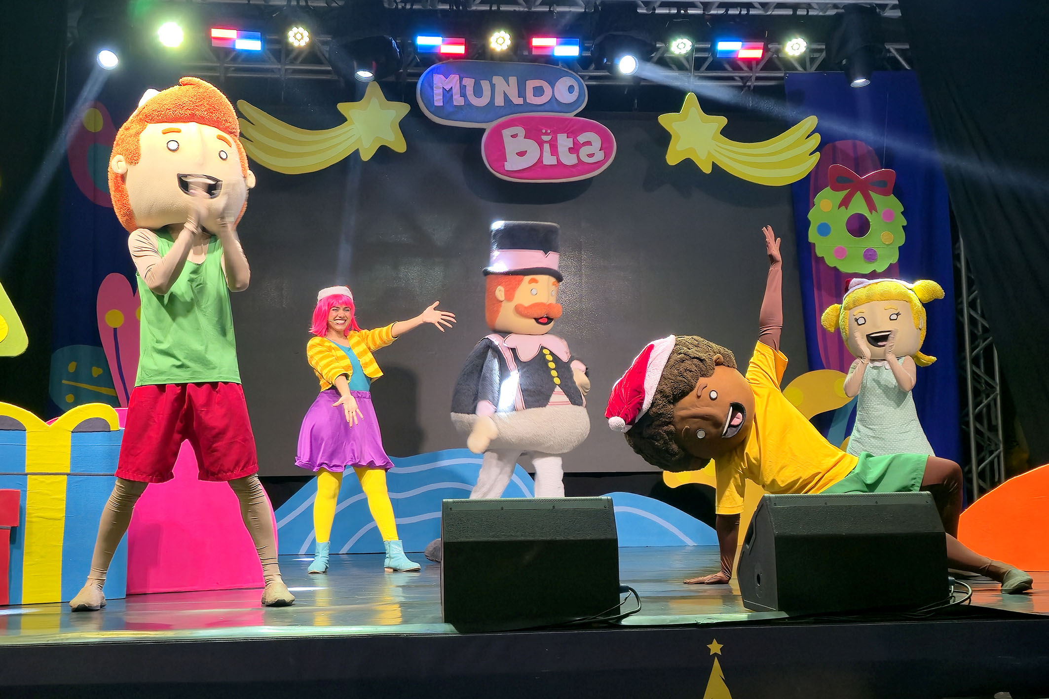 Logo depois, o palco foi tomado pela energia contagiante do Show do Bita, que apresentou uma versão natalina do espetáculo “Festa dos Bichos”. Com os personagens Bita, Flora, Tina, Lila, Dan, Tito e a participação especial do Papai Noel, o público cantou junto sucessos já conhecidos, além das músicas temáticas “Papai Noel” e “Natal do Bita”.