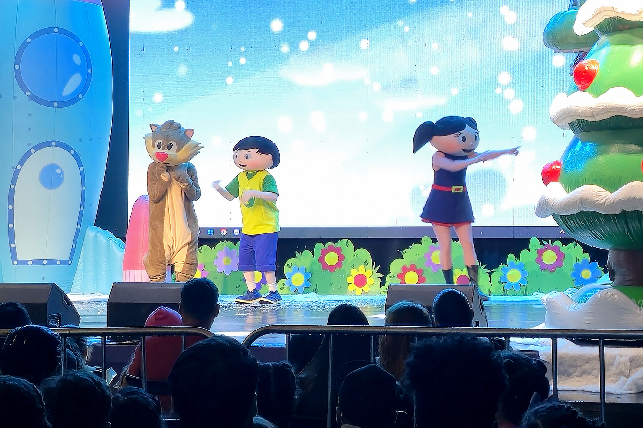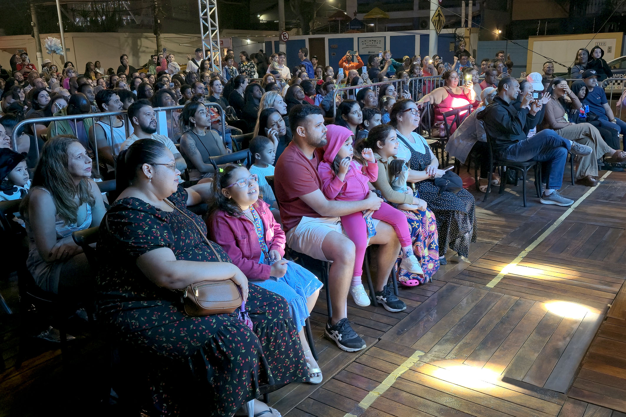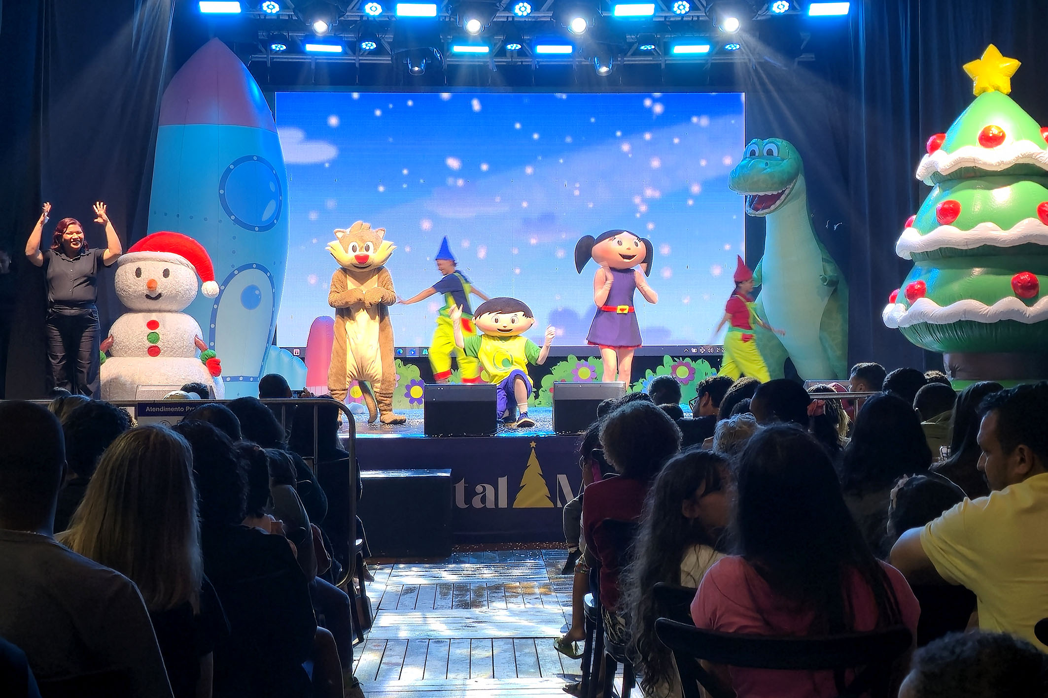 Em seguida, o clima ficou mais lúdico com “O Show da Luna, Ao Vivo! de Natal” foi outra atração da noite. Ao lado dos amigos Júpiter e Cláudio, Luna embarcou em perguntas divertidas e educativas que estimulam a imaginação das crianças, misturando ciência, fantasia e espírito natalino. Questões como a origem da neve, a morada do Papai Noel e até viagens espaciais fizeram parte da narrativa interativa do espetáculo.