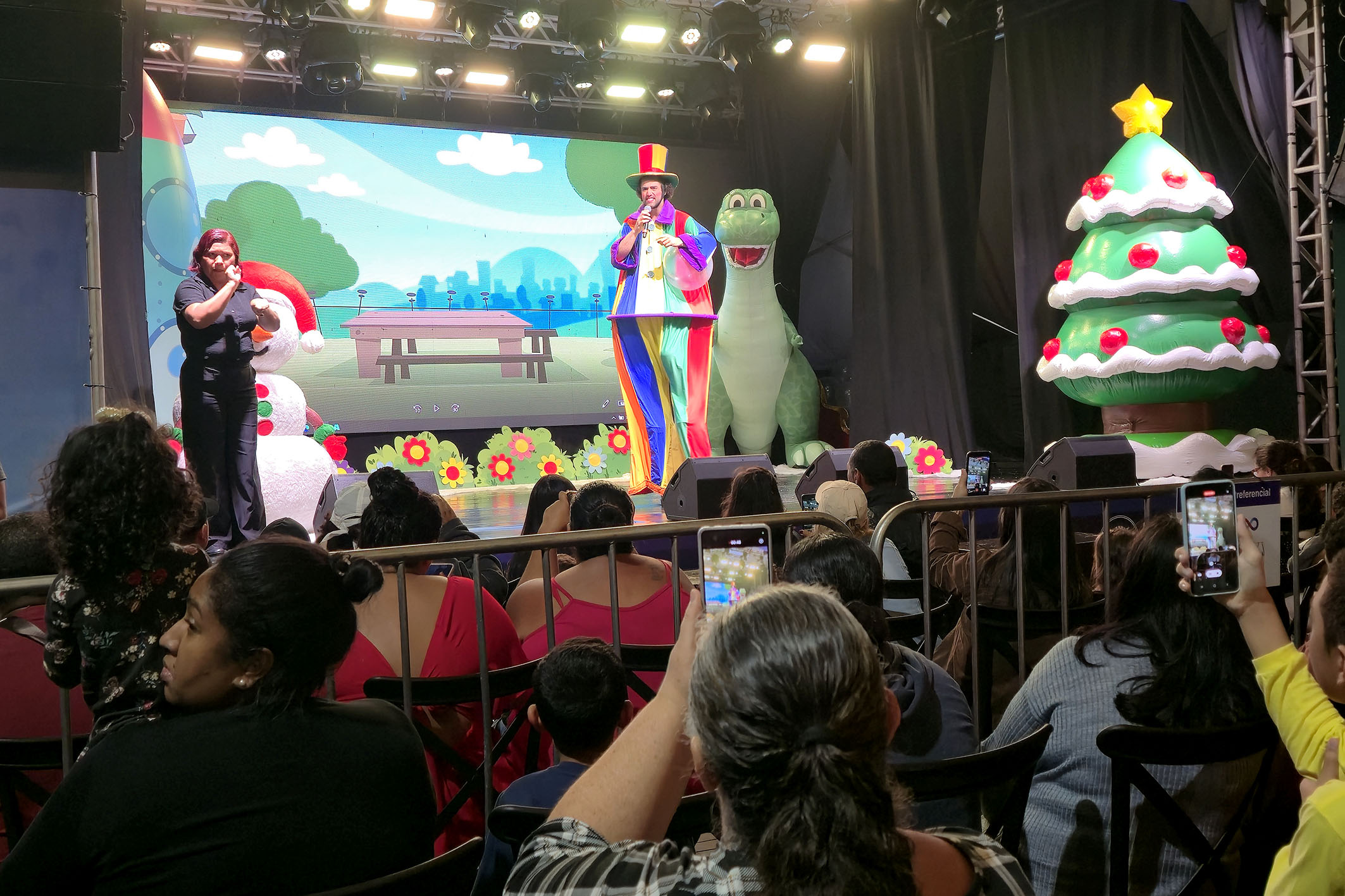 A abertura da noite ficou por conta do espetáculo “Mãos que Cantam e Encantam”, apresentado pelo Coral Libras. Por meio da Língua Brasileira de Sinais, o grupo produziu canções natalinas em gestos cheios de sensibilidade, reforçando a importância da comunicação acessível.