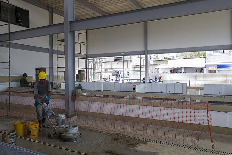 A Prefeitura de Macaé continua as obras de construção do novo Mercado de Peixes. As primeiras 44 bancas que vão abrigar comerciantes estão em fase final, já com pias e azulejos, sendo preparadas as áreas que abrigarão as balanças digitais. Os prédios receberam vidros na parte alta, onde ficarão as salas exclusivas para a administração.
