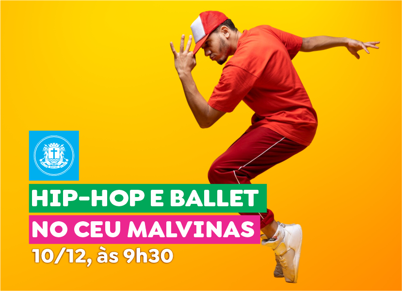 A Secretaria de Cultura realizará nesta quarta-feira (10), às 9h30, uma oficina de Hip Hop e Balé, no CEU Malvinas, a entrada será gratuita e todos moradores e estudantes do entorno poderão participar da programação.