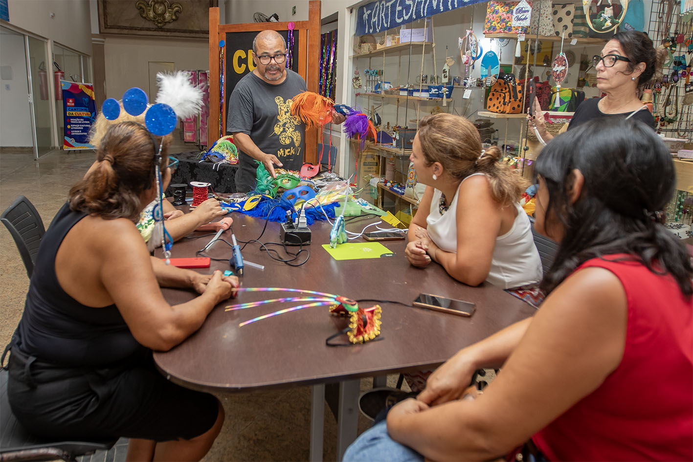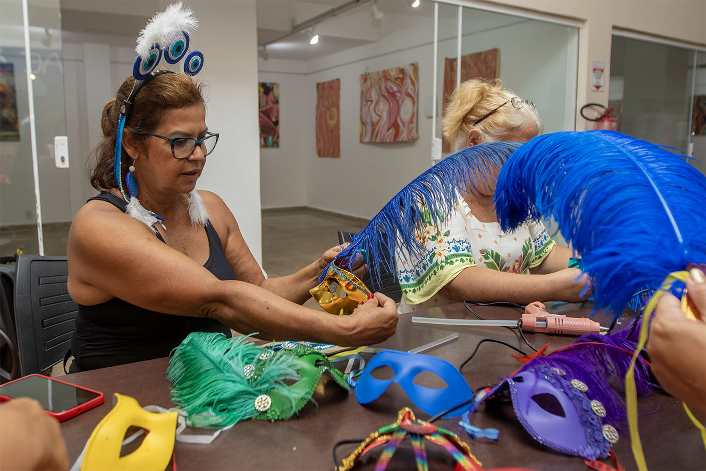 A Oficina de Máscaras idealizada pela Secretaria de Cultura, aconteceu na tarde desta quinta-feira (5), na Galeria Hindemburgo Olive. A aula foi ministrada pelo arquiteto e aderecista Isnard Drumond.
