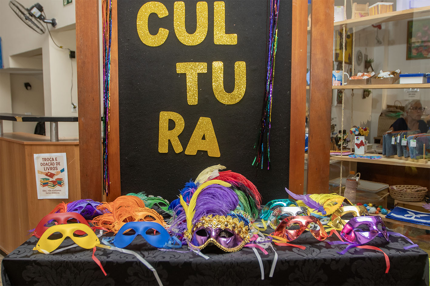 Para fazer as máscaras de Carnaval, além de muita criatividade, foram utilizados paetês, pedras, plumas, penas, entre outros materiais.