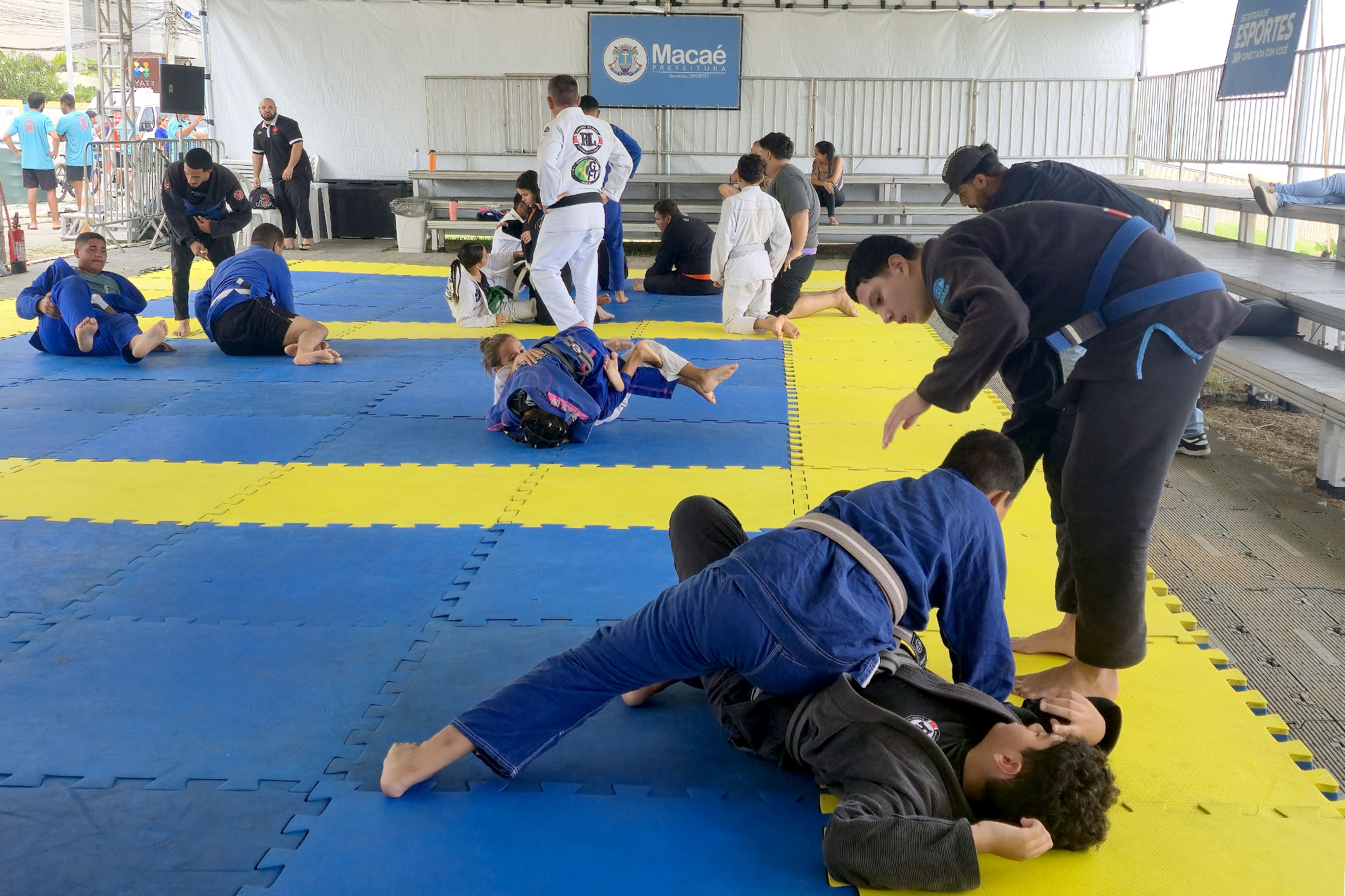 Neste sábado, o público participou de aulas de Pilates e Fitdance pela manhã. No período da tarde, o ritmo continua com Fitdance, às 16h, e Yoga, às 17h. Já no domingo, as atividades têm início às 8h30 com Ritmos, retornando à tarde, às 16h, com mais uma aula da modalidade, garantindo animação e movimento para o público presente.