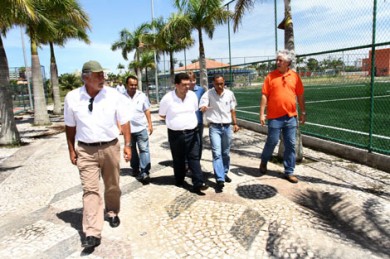 Para conferir o andamento da obra de recuperação do Parque da Cidade, o prefeito Riverton Mussi, os secretários de Obras, Tadeu Campos; Manutenção, Chico Machado; Limpeza Pública, Carlos Eduardo Jardim e o presidente da Empresa Municipal de Iluminação (Emip), Antônio Sardinha, fizeram uma vistoria no local.
