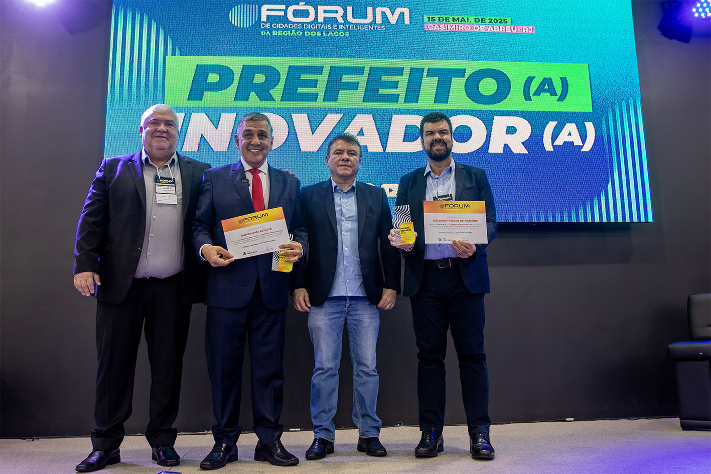 Com diversas políticas públicas voltadas para soluções inovadoras, o chefe do Executivo de Macaé, Welberth Rezende, recebeu nesta quinta-feira (15) a homenagem “Prefeito Inovador 2025”, da Rede Cidade Digital (RCD) em parceria com a Prefeitura Municipal de Casimiro de Abreu. A entrega aconteceu durante o Fórum de Cidades Digitais e Inteligentes da Região dos Lagos. O reconhecimento foi pelo desenvolvimento da ferramenta de integração ao e-Social, criada pela equipe da Secretaria Municipal de Gestão de Pessoas.