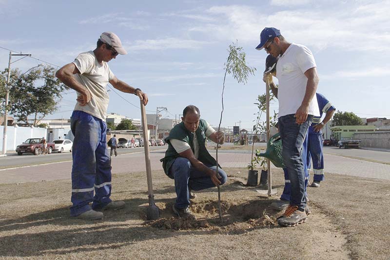 A coordenadoria de Arborização da secretaria de Ambiente (Sema) plantou nesta semana 135 mudas de Pau-Ferro, Sibipiruna, Grumixama, Pitanga, Araçá e outras no bairro Lagomar, nos canteiros da Avenida Central, próximo ao terminal de ônibus.
