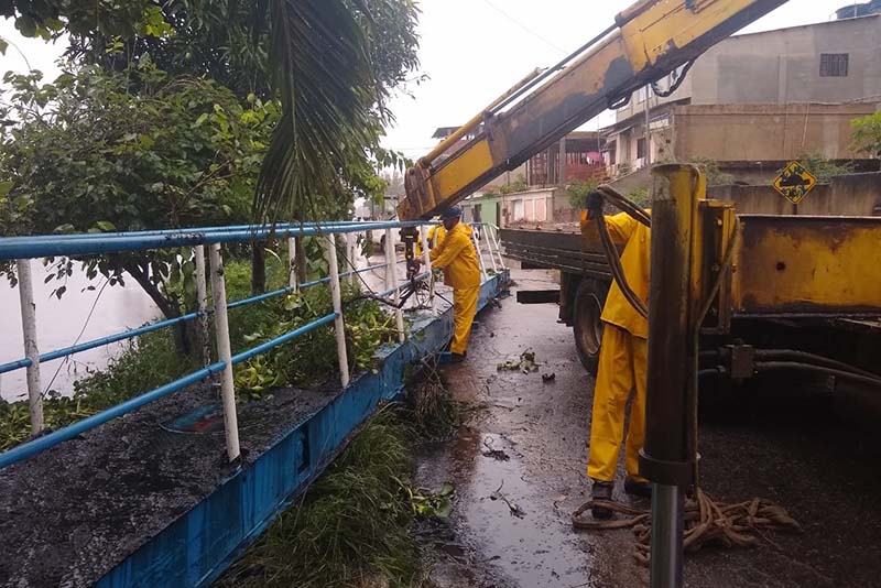 A Secretaria Adjunta de Interior prossegue com a recuperação de estradas e pontes. Nesta quarta-feira (14), as equipes atuam na recuperação da ponte do Sana.