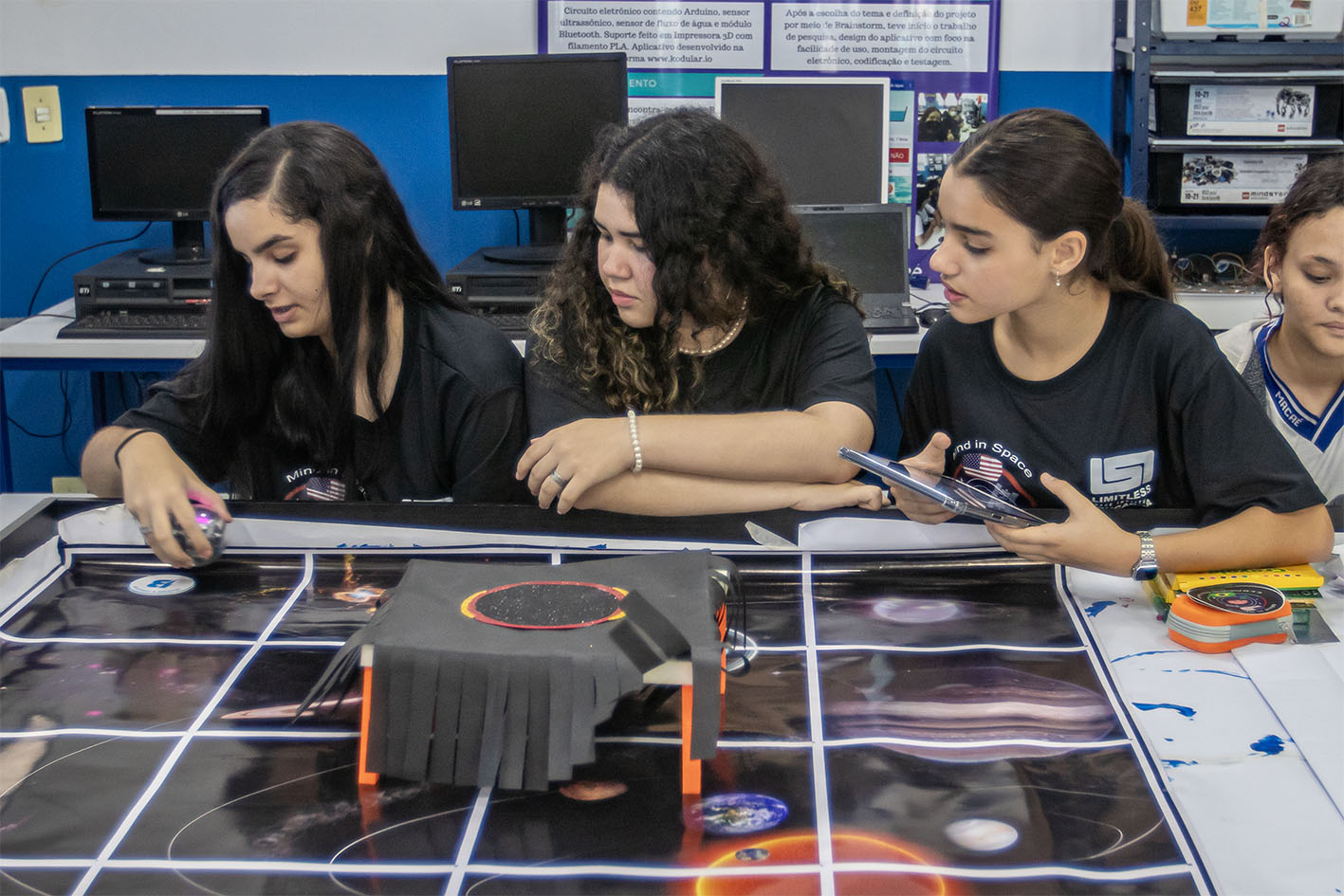 “As minhas seis turmas de Robótica da Polivalente estão realizando as atividades que aprendo com o Limitless Space Institute, onde usamos os materiais que recebemos dos Estados Unidos”, concluiu.