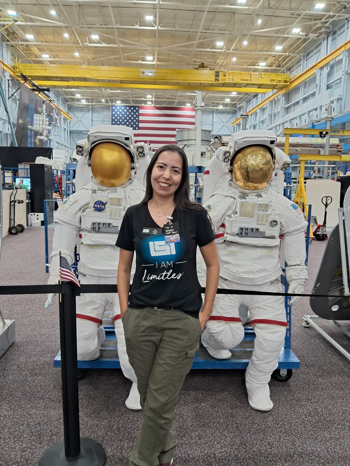 “Nós entramos na Nasa como convidados VIPs, por isso fomos até a área de treino dos astronautas, onde tem a piscina com 23 milhões de litros de água e 18 metros de profundidade. A piscina é importante para eles, pois o traje espacial para as caminhadas espaciais pesa cerca de 150 quilos, então, eles usam esse traje dentro dessa piscina para treinar a movimentação e a interação com os equipamentos”.
