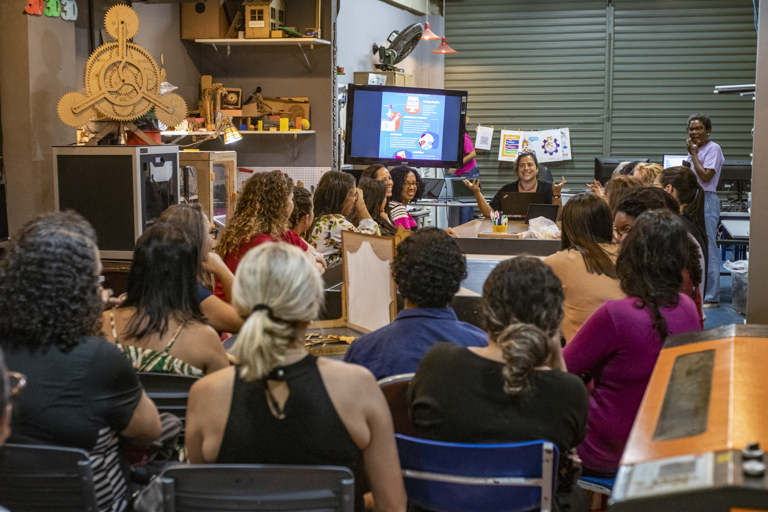 A programação organizada pelo Centro de Formação Professora Carolina Garcia foi ministrada pela equipe do Programa #inovareaprender de Robótica Educacional, Cultura Maker e Inovações Pedagógicas. Com mediação da responsável pelo InovareAprender, a designer educacional Luemy Ávila, foram destacados assuntos relevantes que podem fazer diferença na inclusão, como a inovação nas práticas pedagógicas, robótica educacional e prática maker.