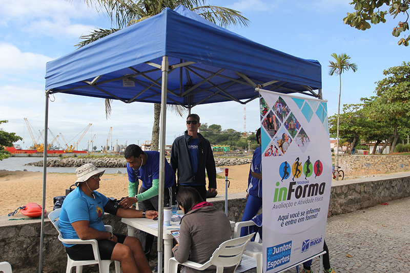 Mais qualidade de vida para a população. Esta é a proposta da Secretaria de Esportes, com o projeto "Informa", que começou este mês, de forma itinerante, nos bairros de Macaé. Depois do Parque Aeroporto, nesta quarta-feira (24) foi a vez da orla de Imbetiba receber as ações. Quem passou pelo local, como o aposentado Evandro Sena de Araújo, 64 anos, contou com avaliação física e orientações sobre a saúde.