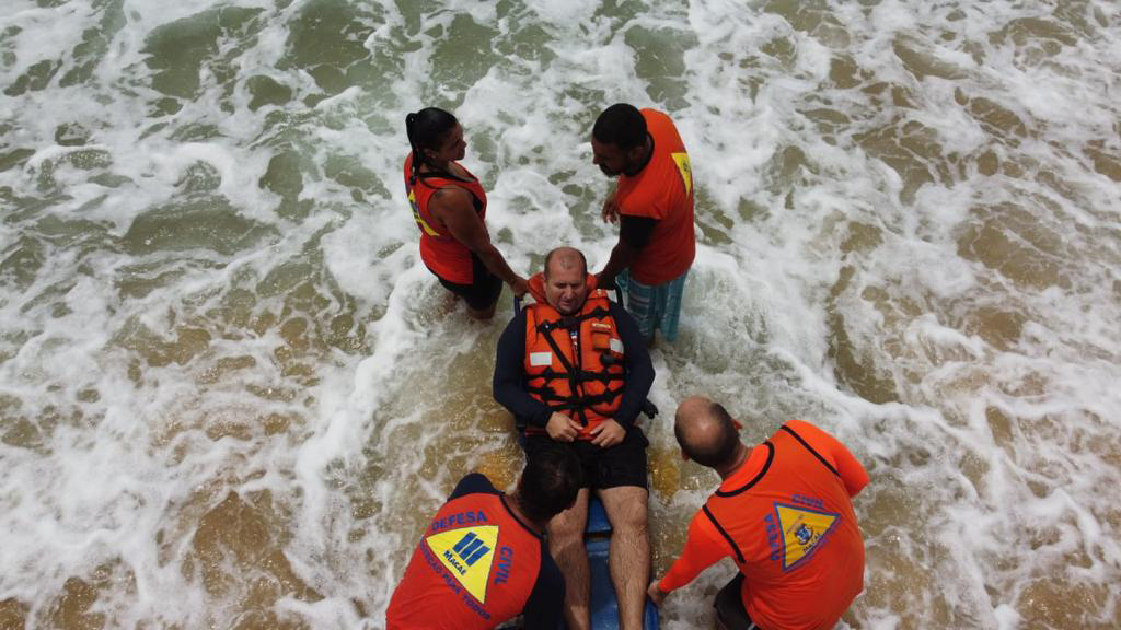 Hoje (terça-feira, dia 14), foi realizado um treinamento para a aptidão física interna dos agentes da Defesa Civil que vão participar da ação. "Esse é um projeto de responsabilidade social. Buscamos, além de possibilitar o banho de mar, um contato mais próximo às pessoas de baixa mobilidade. É um momento de lazer e descontração para essa parcela da população", disse o Secretário Adjunto de Defesa Civil, Joseferson de Jesus Florencio.