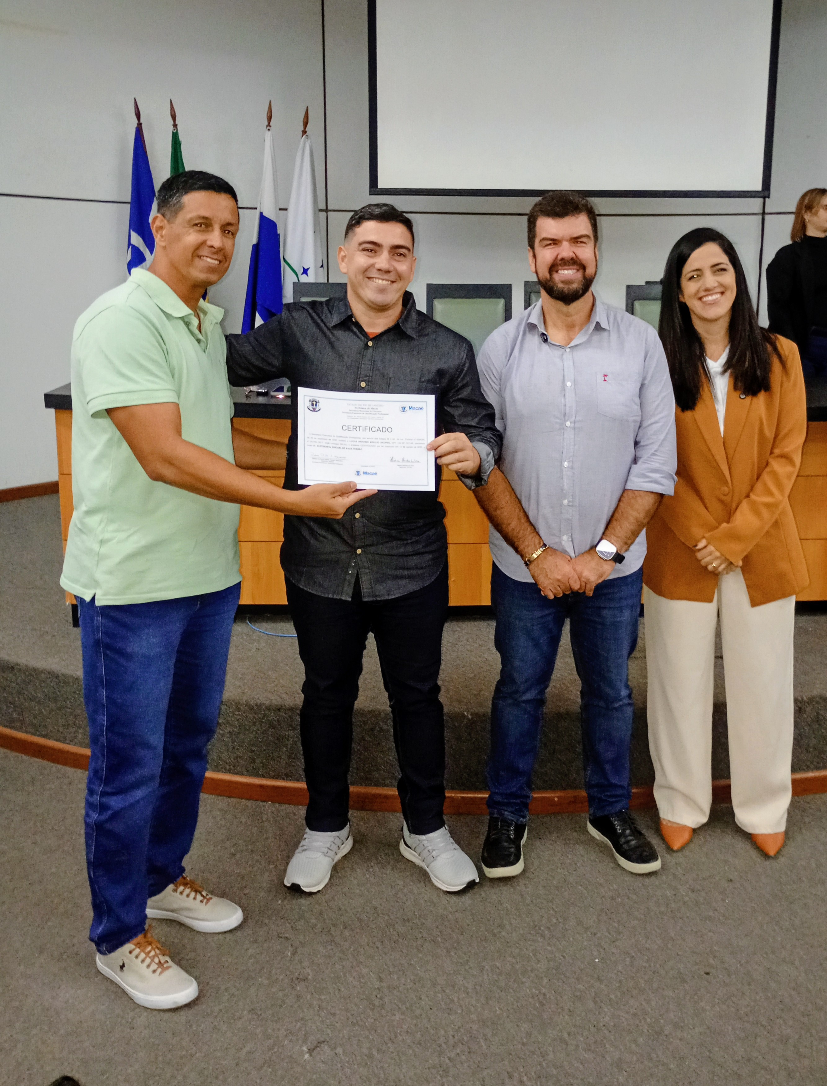 A Secretaria de Qualificação Profissional entregou na tarde desta sexta-feira (10), no Paço Municipal, certificados aos alunos que concluíram cursos, como por exemplo, auxiliar de enfermagem, recepcionista, eletricista, cuidador infantil, inglês básico, entre outros. A solenidade contou com a presença do prefeito Welberth Rezende.