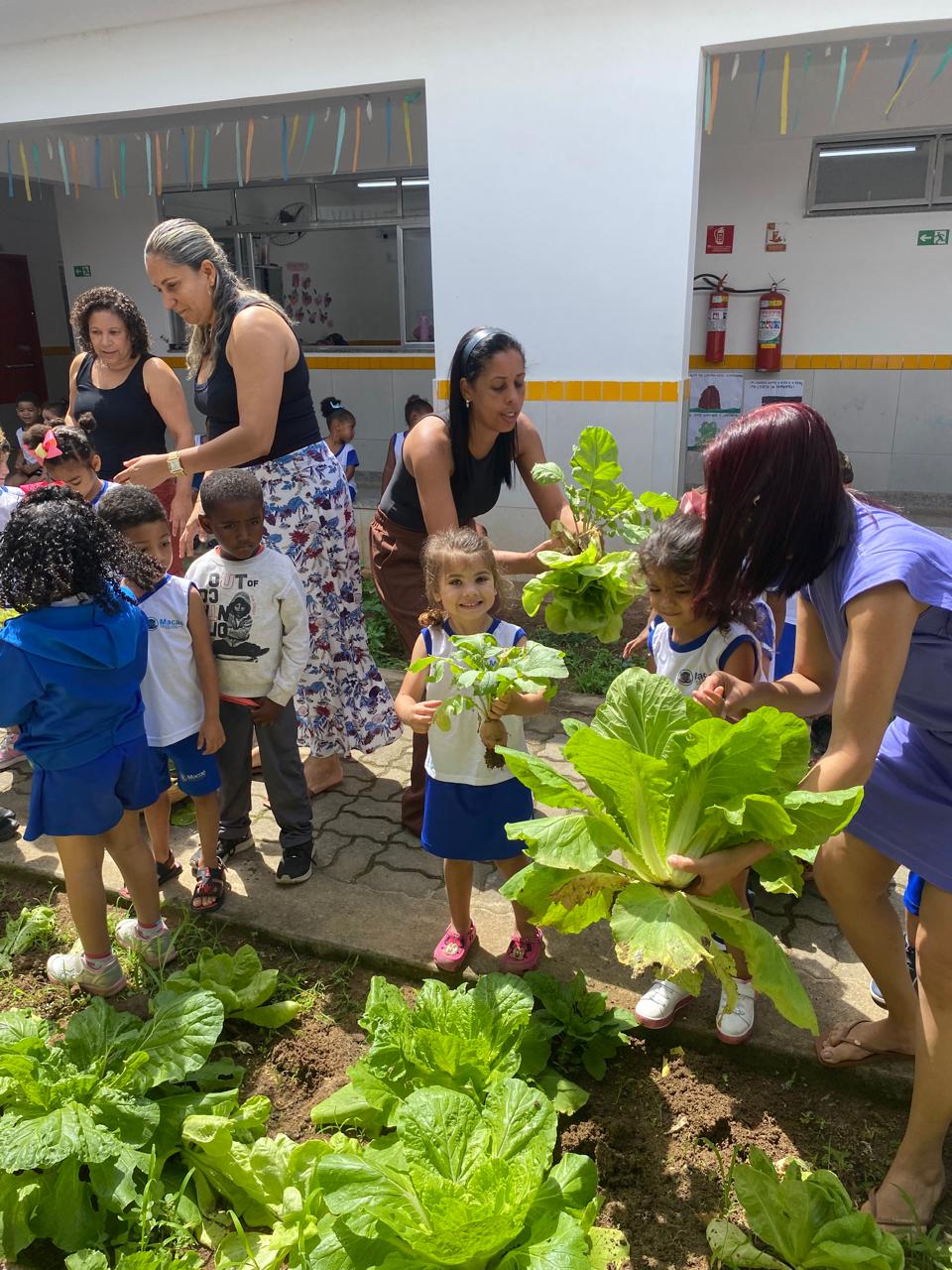 O projeto “Que Mato é Esse?” promoveu a colheita de hortaliças em três unidades de ensino nesta terça-feira (4). As contempladas foram as Escolas Municipais de Educação Infantil Zélia de Souza Aguiar (Malvinas), Professora Ana Cristina Azarany (Lagomar), Professora Maria das Dores Souza Tavares (Morro de São Jorge).