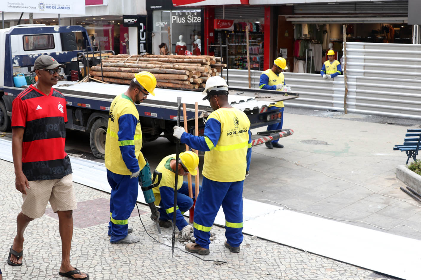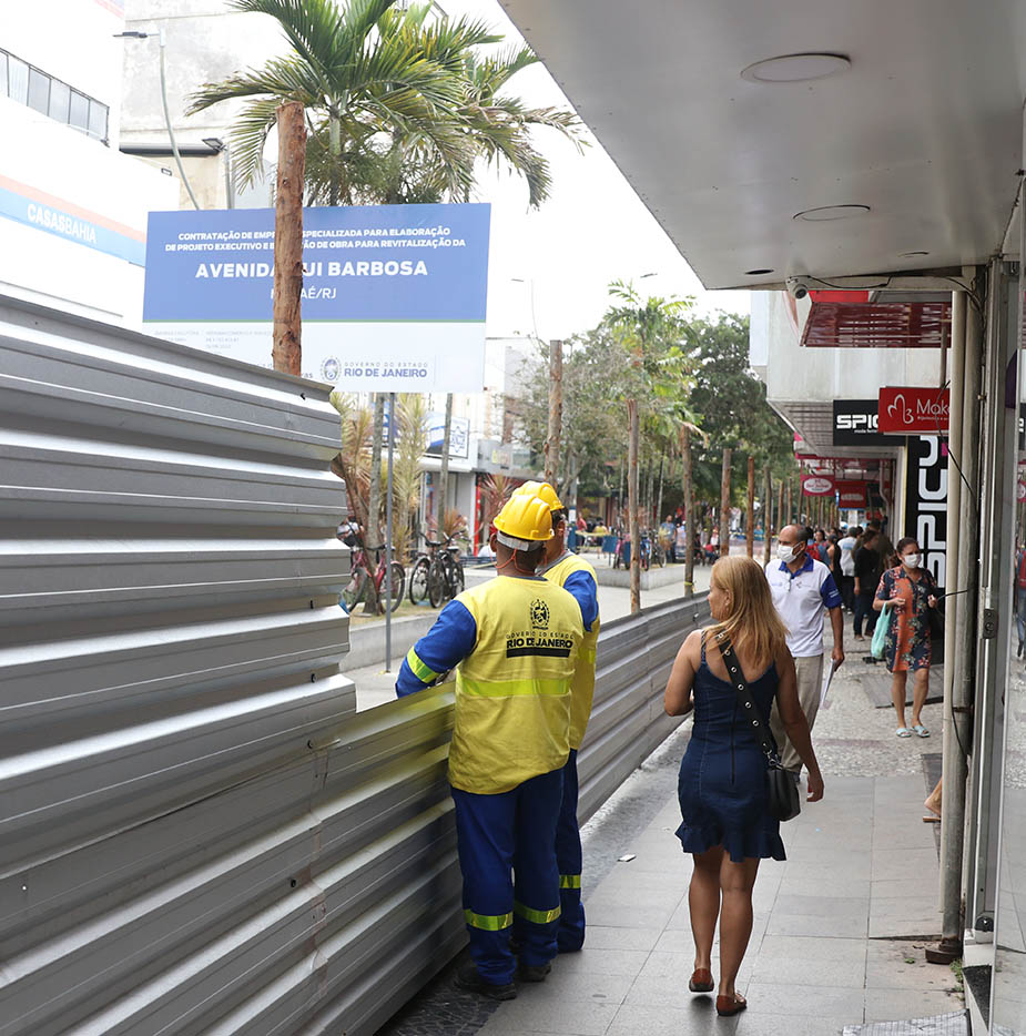 A revitalização do Calçadão da Avenida Rui Barbosa, maior centro comercial de Macaé, está chamando atenção por conta do início da instalação dos tapumes de dois metros de altura nas duas margens, no pátio de passagem de pedestres entre as ruas Silva Jardim e Euzébio de Queiroz. O trabalho começou em 15 de junho, com a montagem do canteiro de obras. A reforma será realizada por blocos, sendo que, neste primeiro, levará de dois a três meses de execução. São cinco blocos no total.