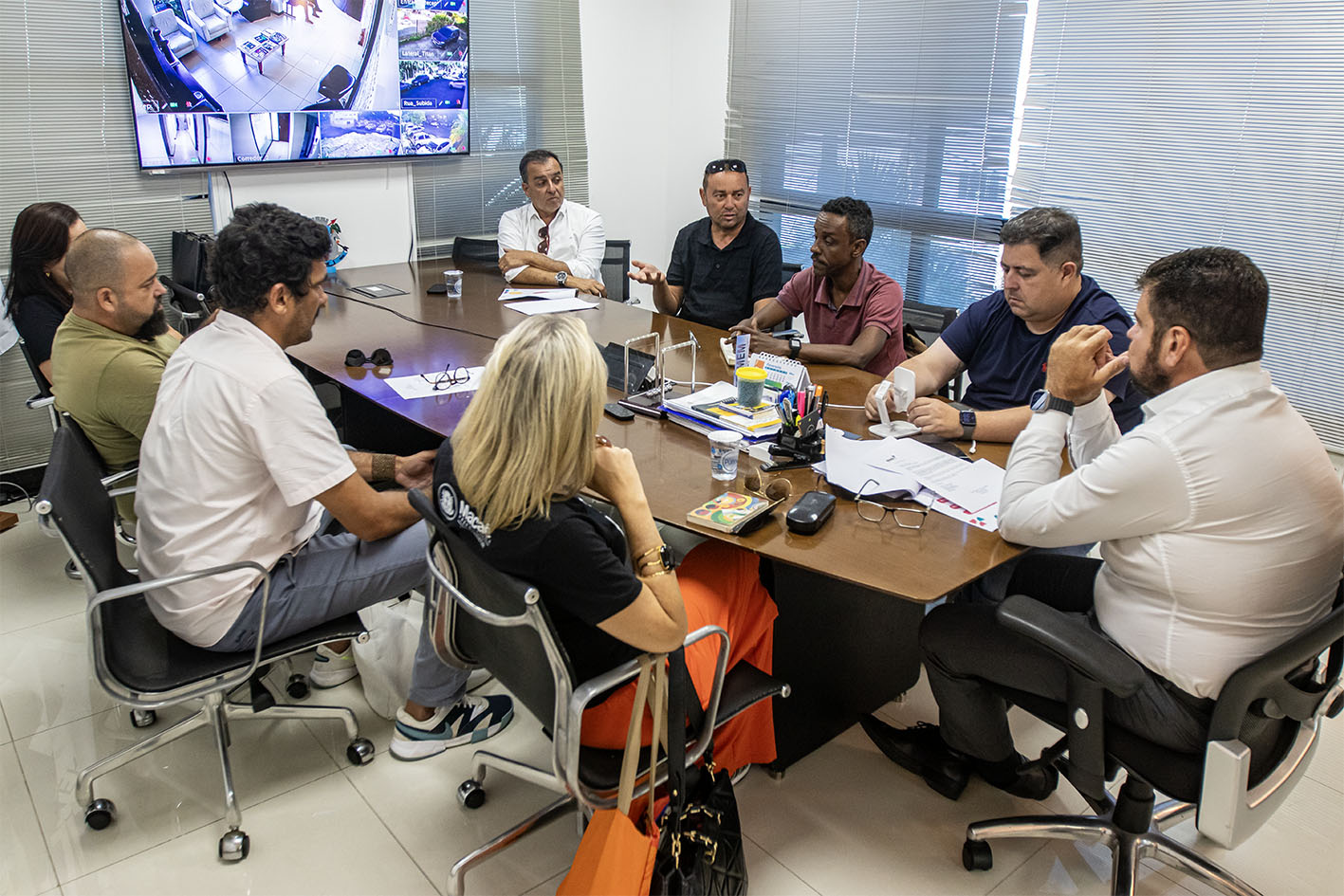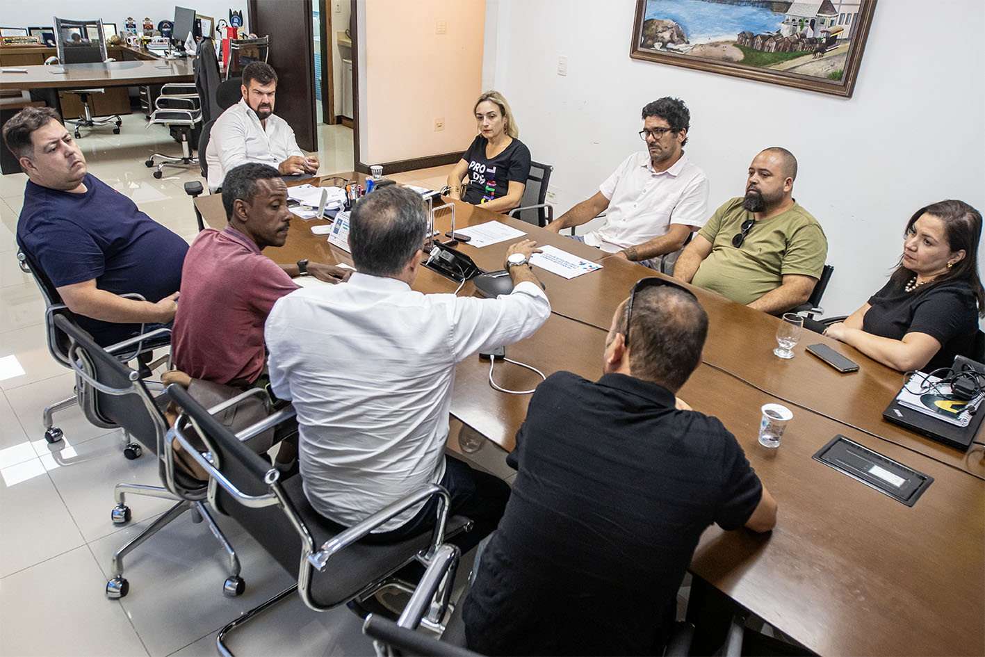 Participaram da reunião a secretária de Cultura, Waleska Freire, e os secretários de Turismo, Léo Anderson, e de Desenvolvimento Econômico, Rodrigo Vianna.