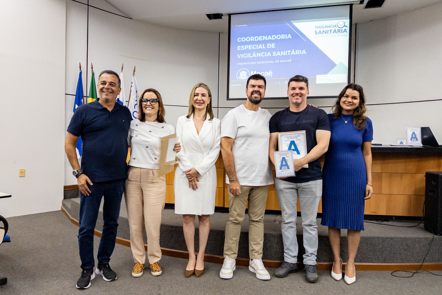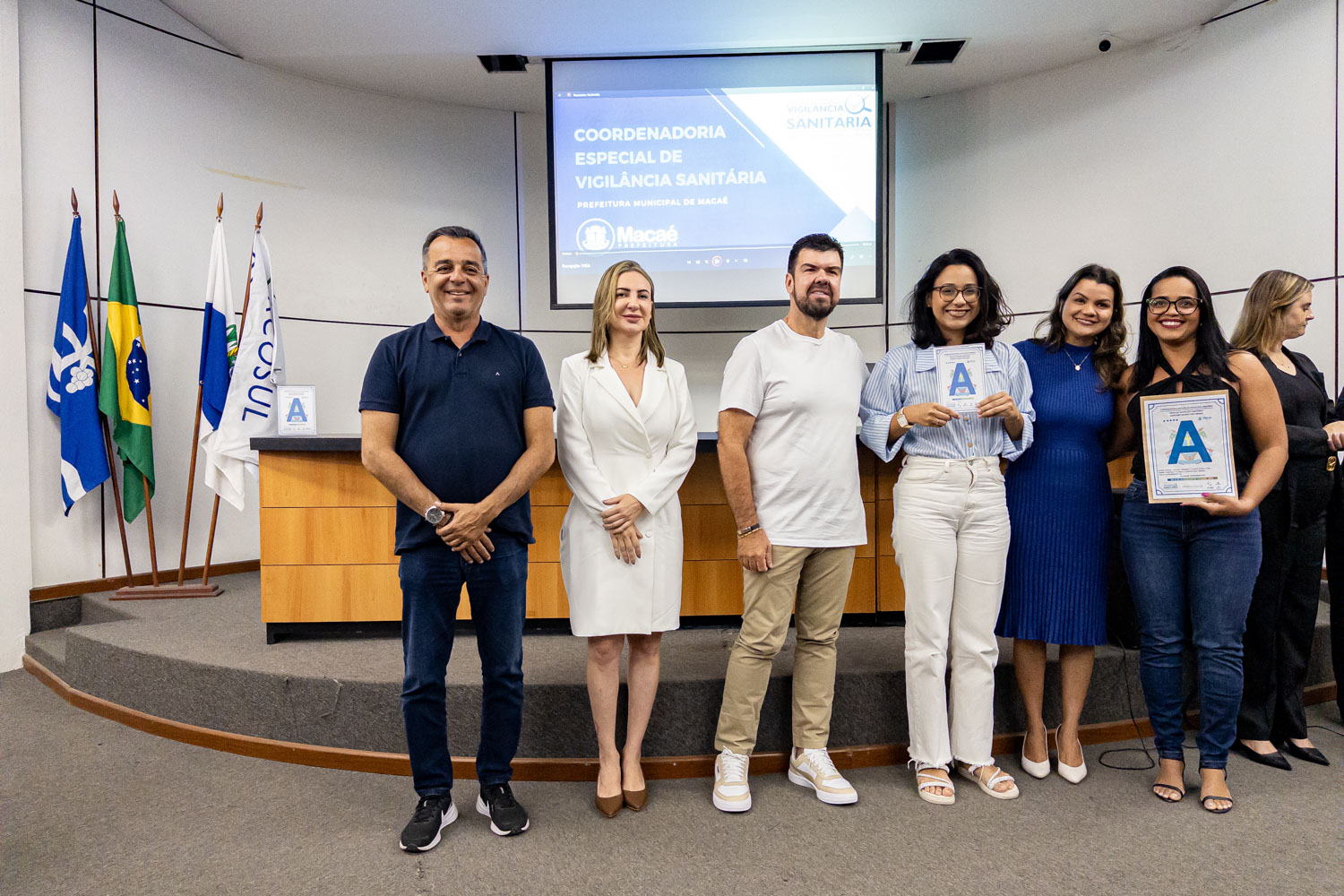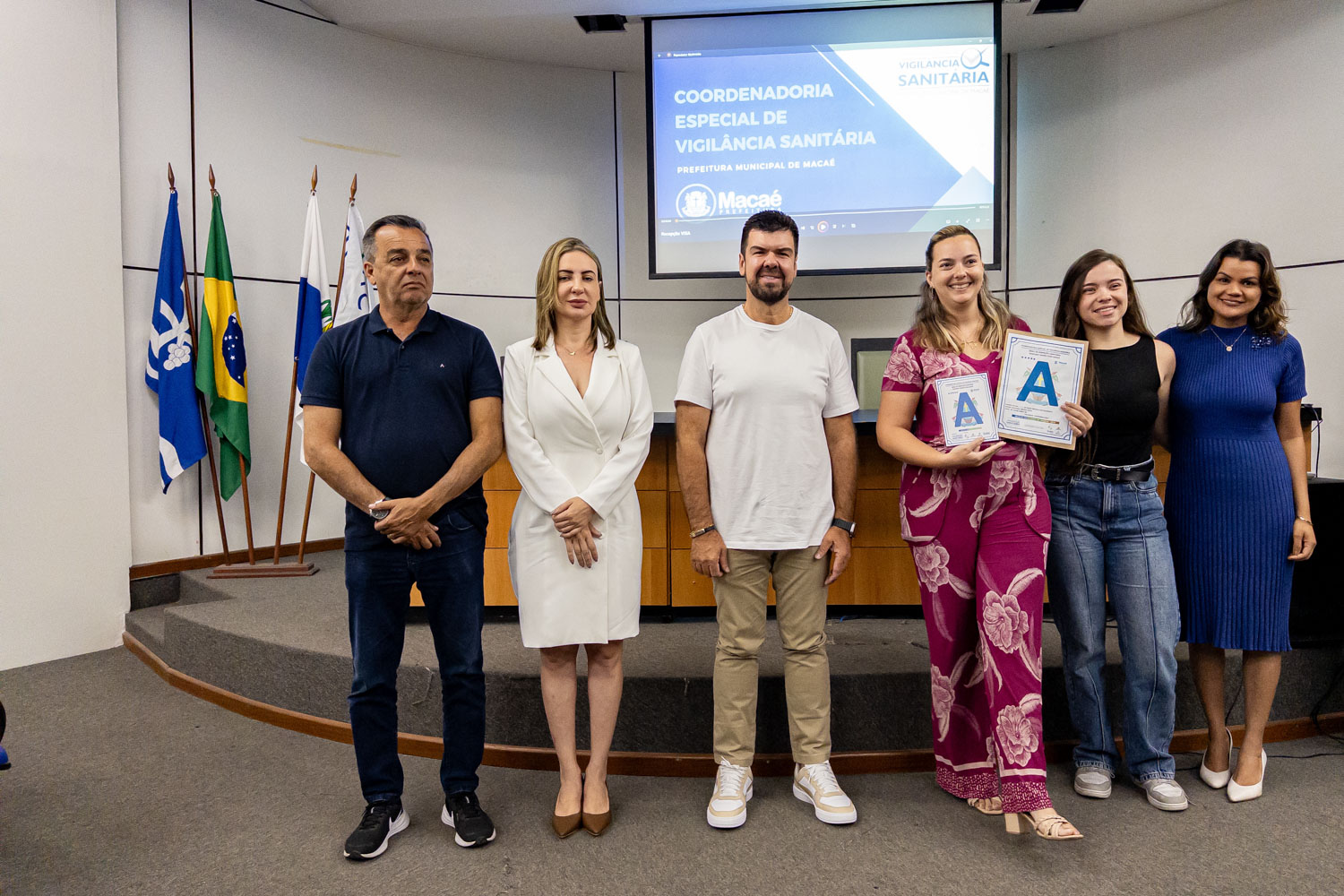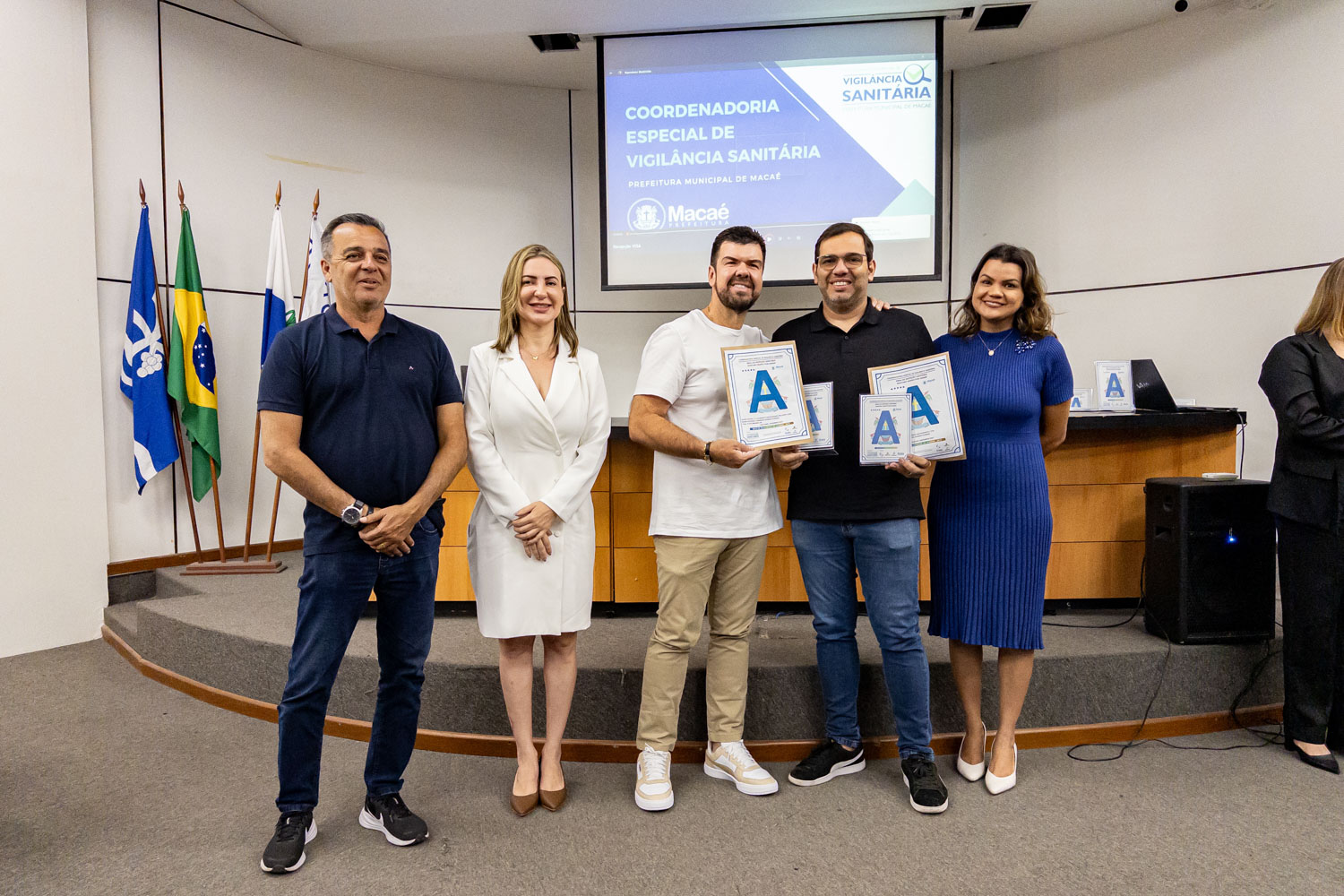 Dezenove estabelecimentos comerciais de Macaé renovaram os ‘Selos A B C’ conferidos pela Coordenadoria Especial de Vigilância Sanitária por práticas que contribuem para a qualidade da empresa e dos alimentos. O prefeito Welberth Rezende participou da cerimônia de certificação, na manhã desta quinta-feira (18), no Paço Municipal. Ele destacou o desenvolvimento econômico da cidade, com perspectivas positivas para os próximos anos, o que estimula o investimento de empresários locais.