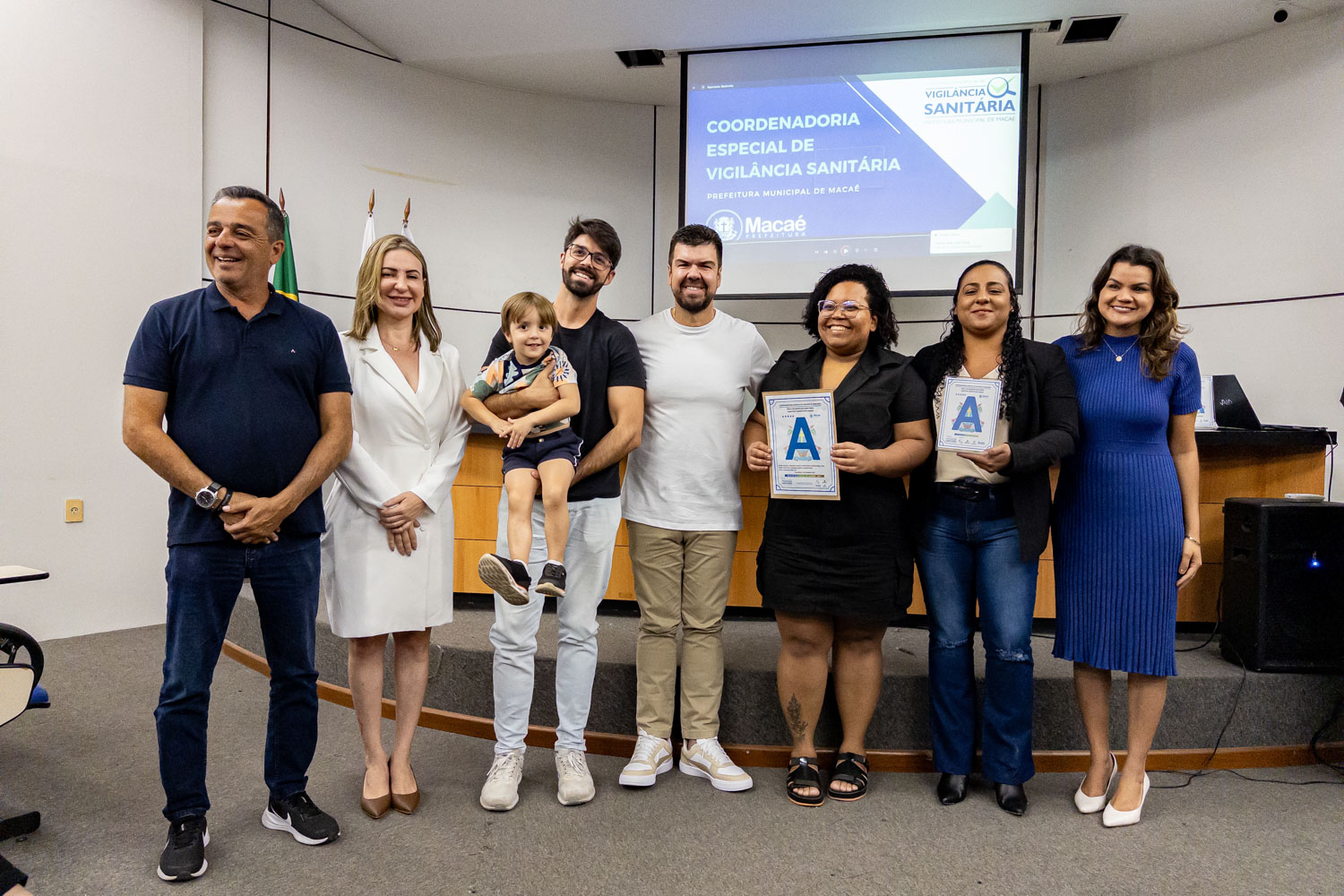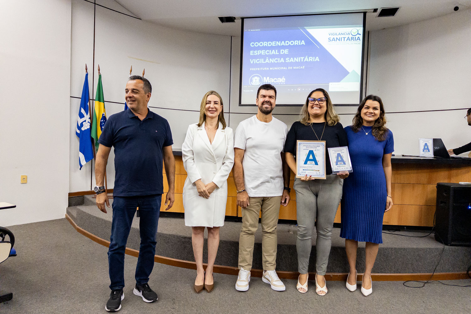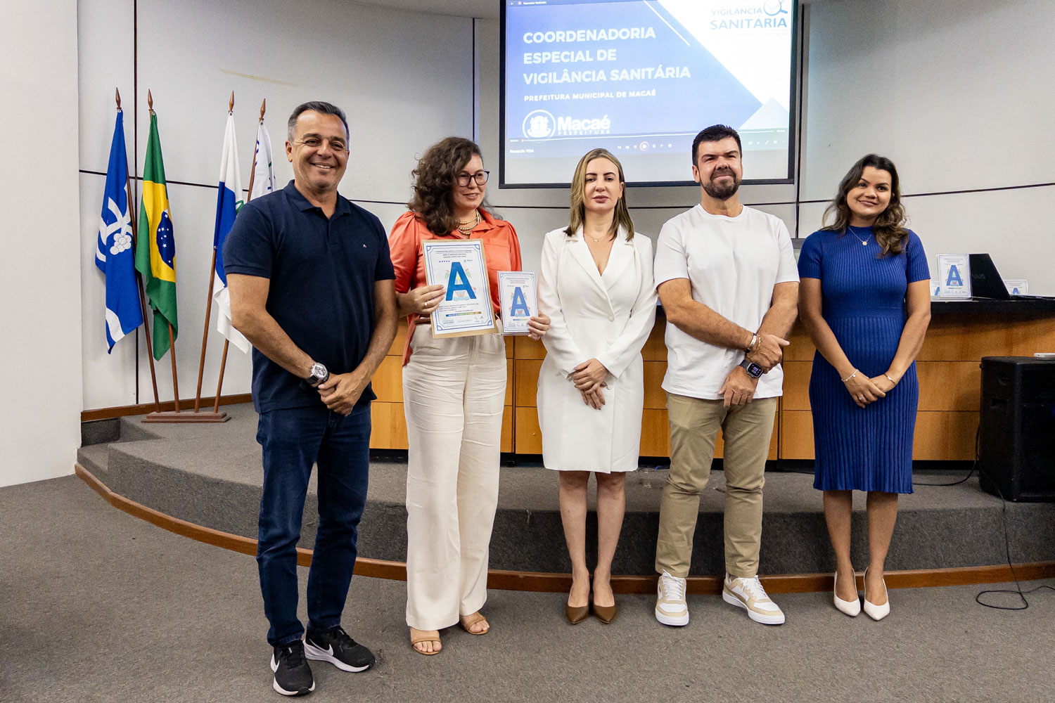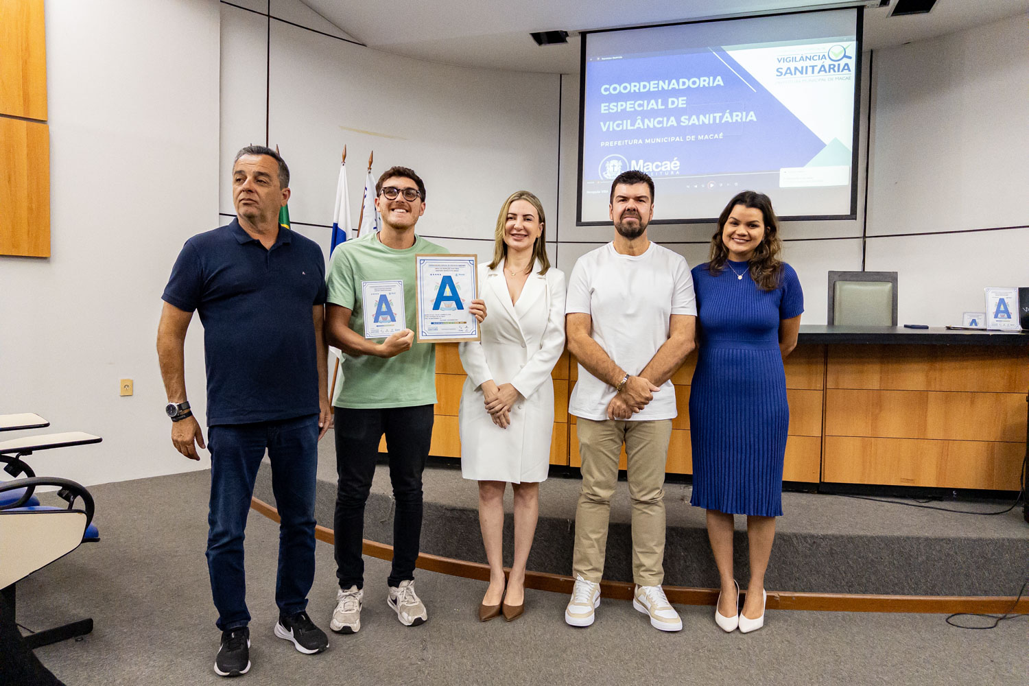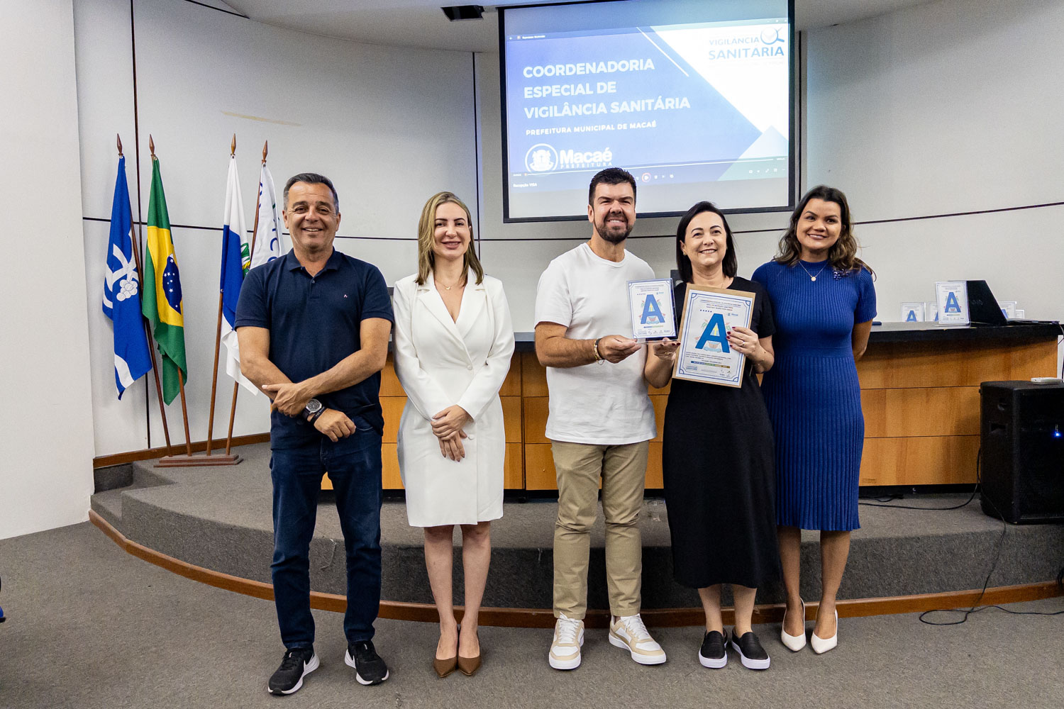 Dezenove estabelecimentos comerciais de Macaé renovaram os ‘Selos A B C’ conferidos pela Coordenadoria Especial de Vigilância Sanitária por práticas que contribuem para a qualidade da empresa e dos alimentos. O prefeito Welberth Rezende participou da cerimônia de certificação, na manhã desta quinta-feira (18), no Paço Municipal. Ele destacou o desenvolvimento econômico da cidade, com perspectivas positivas para os próximos anos, o que estimula o investimento de empresários locais.