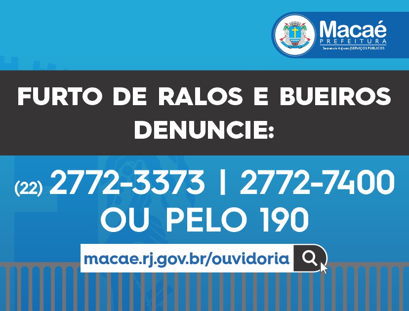 “Por favor, não venda nem compre tampos e grades de ralos e bueiros públicos. Este material tem sido furtado insistentemente, o que vem causando grande transtorno à população, provocando acidentes, é o seu imposto que é investido em benfeitorias nos equipamentos públicos municipais”, informa.