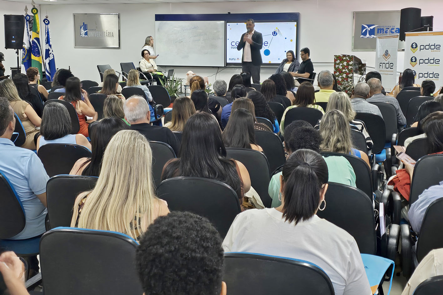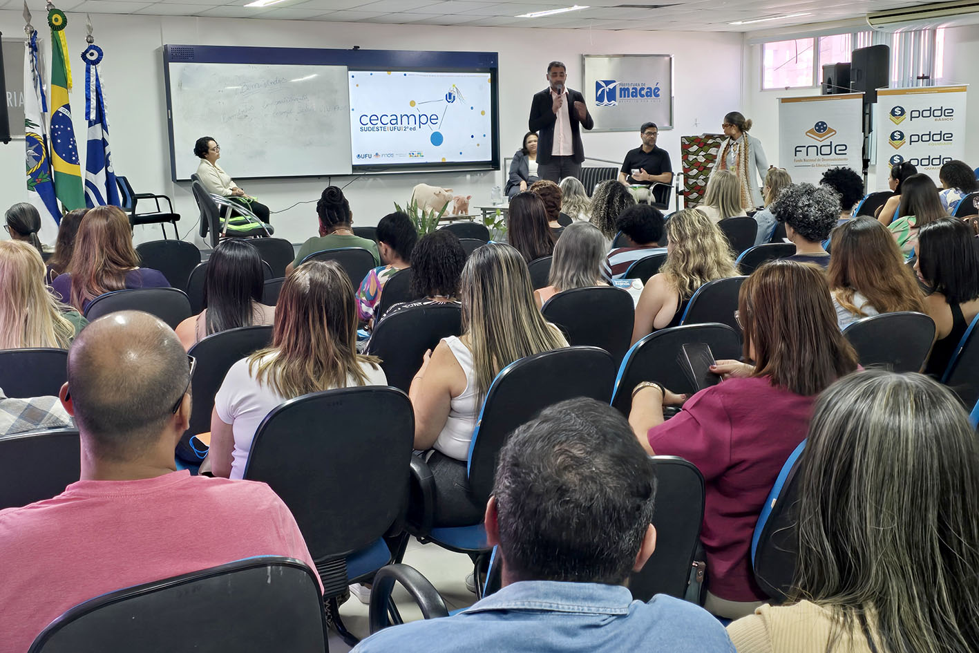 O auditório esteve lotado nos dois dias de programação, e todos os participantes receberão certificado emitido pela UFU. A mesa solene foi composta pelo secretário de Educação Básica de Macaé, Adalmir Cardoso Ribeiro Filho; pela coordenadora de Gestão Democrática do município, Luiziane Luzitano Ramos dos Santos; pelo coordenador institucional do Cecampe Sudeste, Cairo Mohamad Ibrahim Katrib; e pela professora doutora Viviane Moraes, da Universidade Federal Fluminense (UFF), uma das palestrantes do evento.