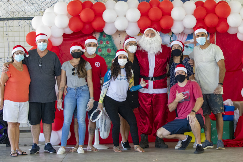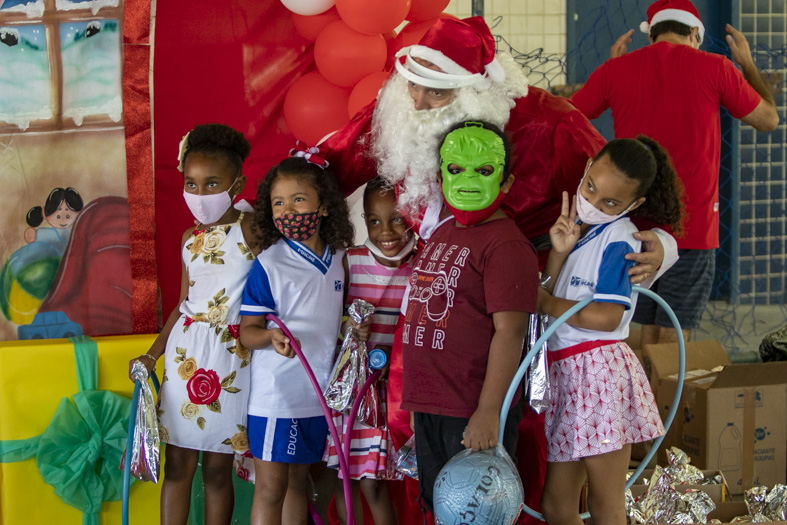 Alunos da Escola Municipal Sônia Regina de Souza Lapa, localizada na Ajuda de Baixo, ganharam, na manhã deste sábado (11), uma festa de Natal com direito a algodão doce, bolo, pipoca e a inesperada visita do "Papai Noel", que levou presente para todas as crianças. A ação aconteceu na quadra do bairro e contou com a solidariedade do Clube de Canoa Loko Vaa, que contribuiu, de forma expressiva, para a realização do evento.