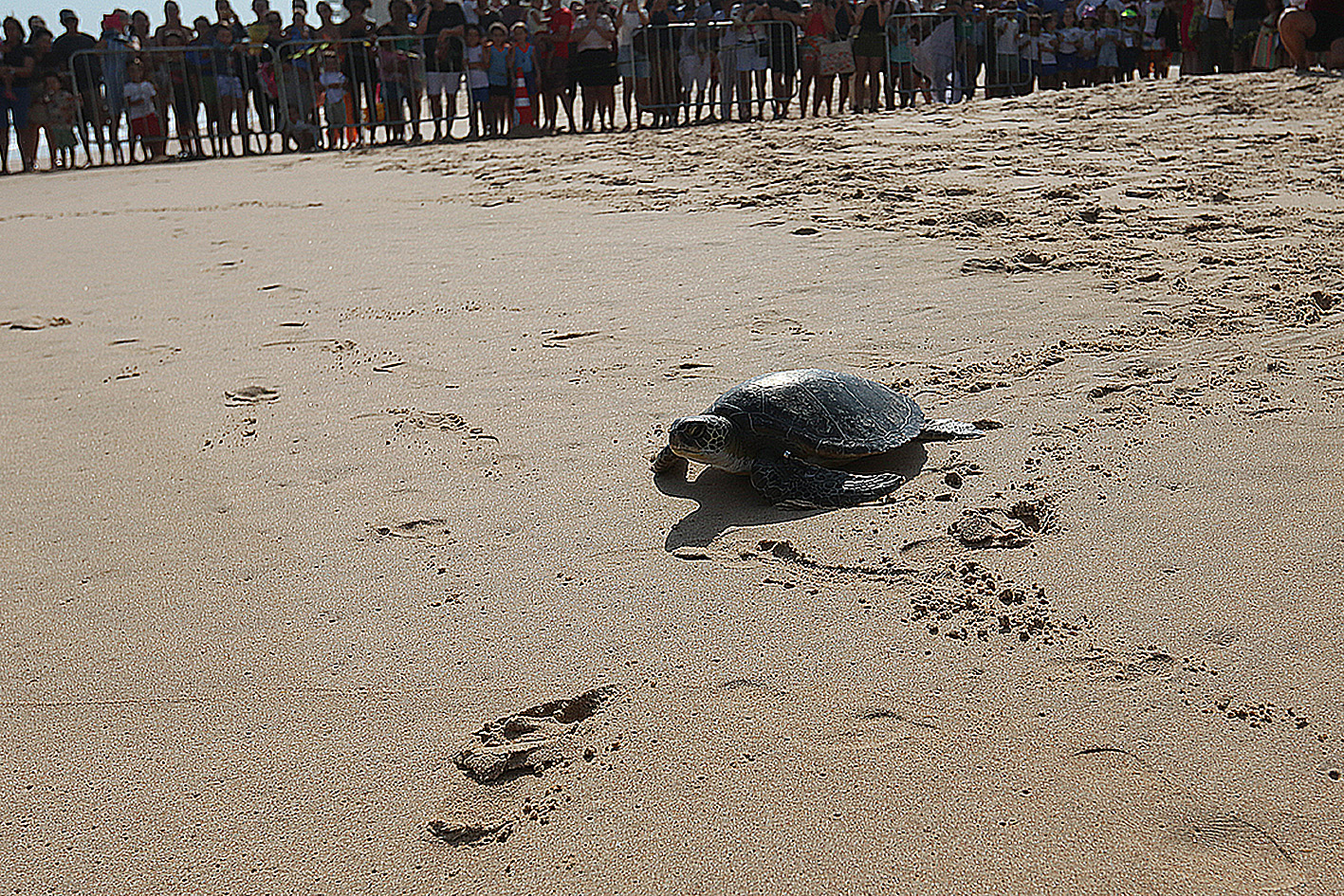 A tartaruga-verde foi solta na tarde desta sexta (28), na Praia dos Cavaleiros
