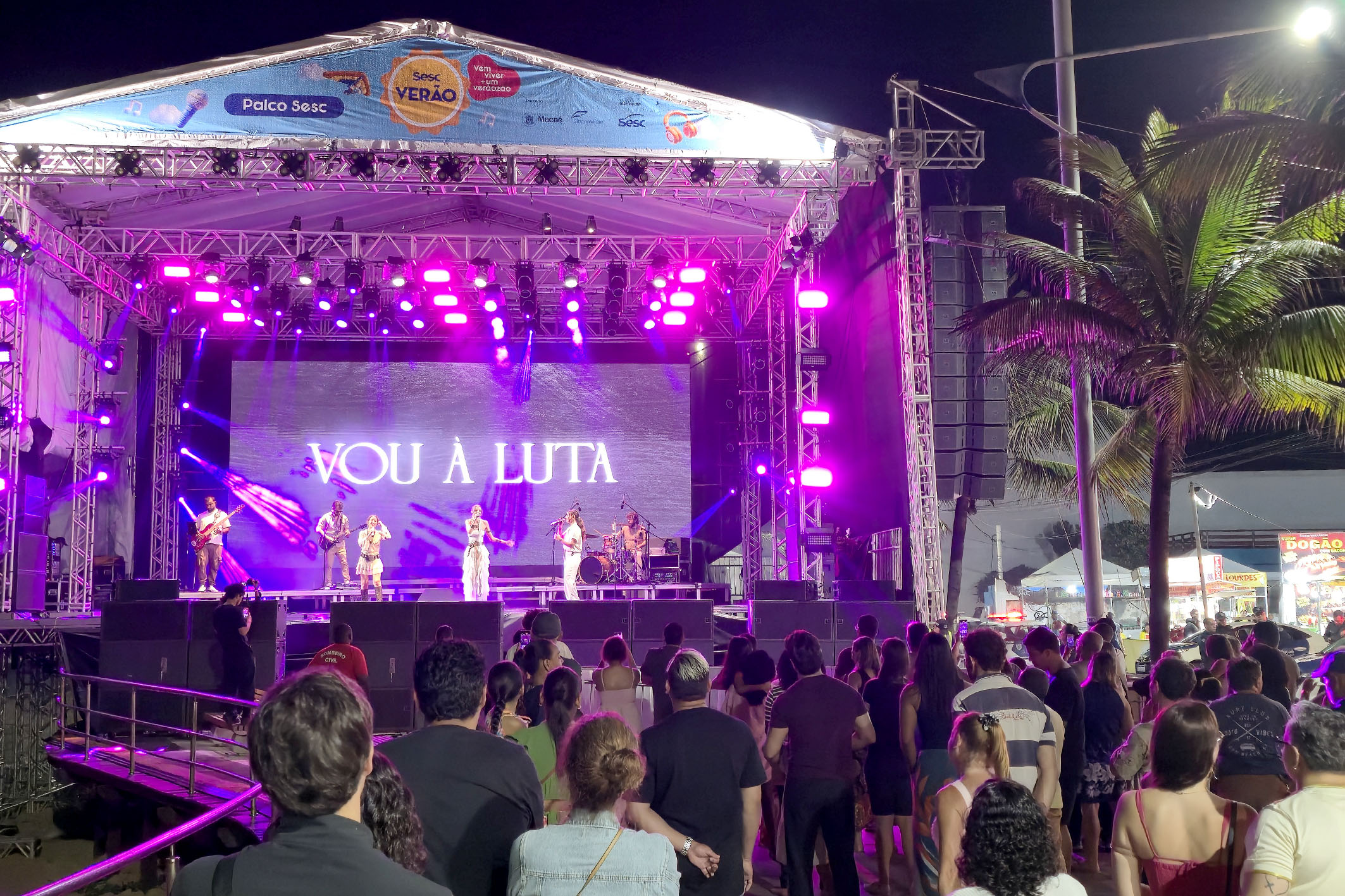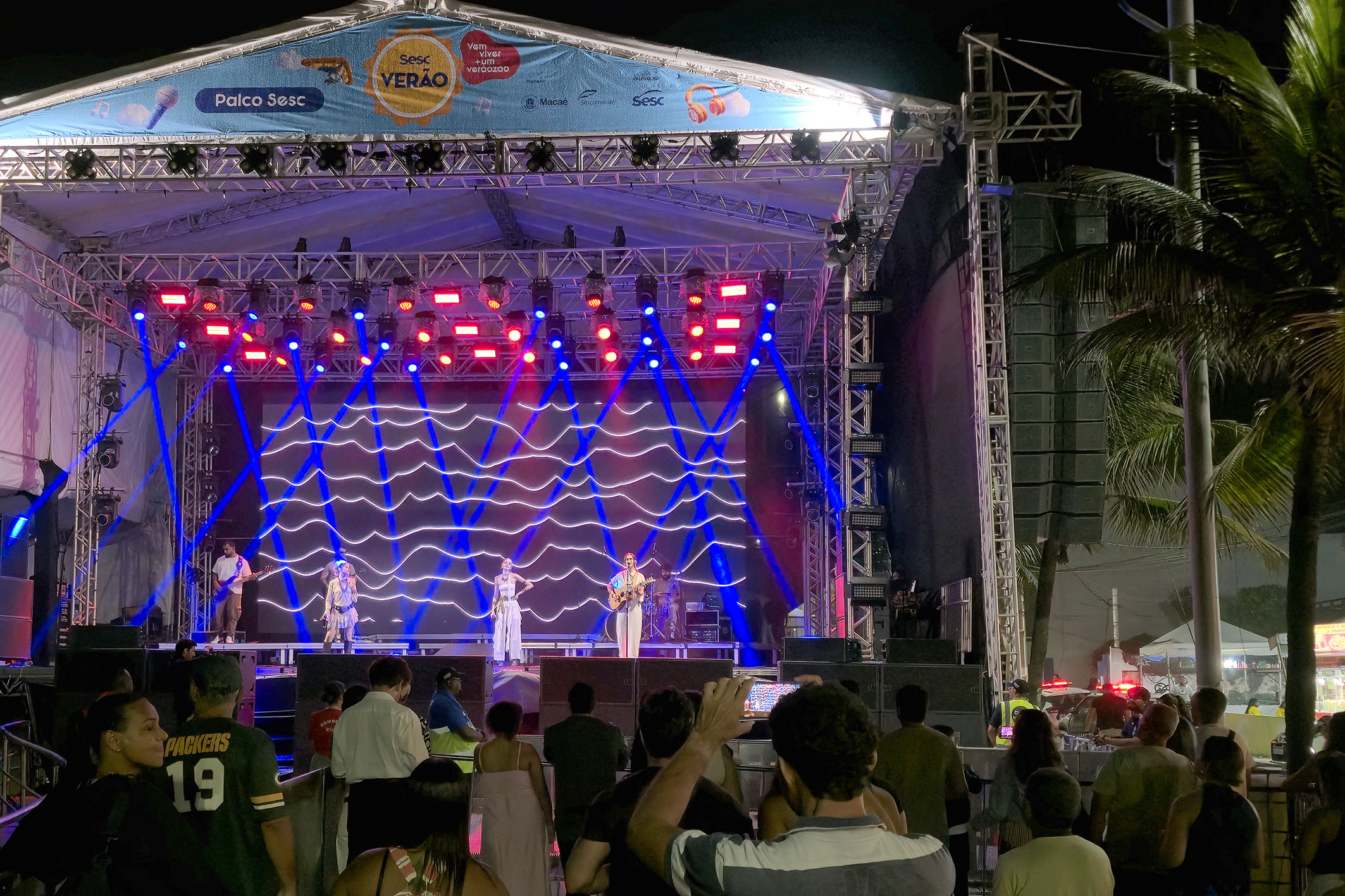 O trio feminino SalDoce foi a atração do domingo (25) na programação do Sesc Verão, realizado em parceria com a Prefeitura de Macaé, no palco montado na Praia dos Cavaleiros. O show, iniciado às 19h, levou ao público uma apresentação marcada por leveza, sintonia vocal e mensagens positivas.